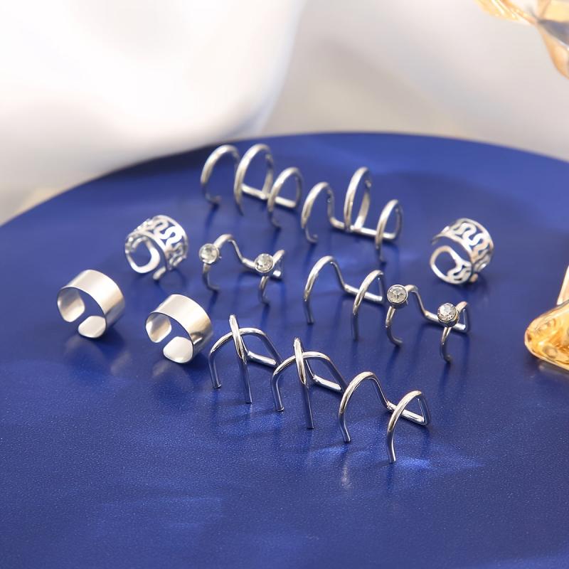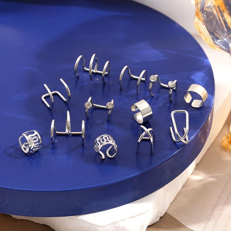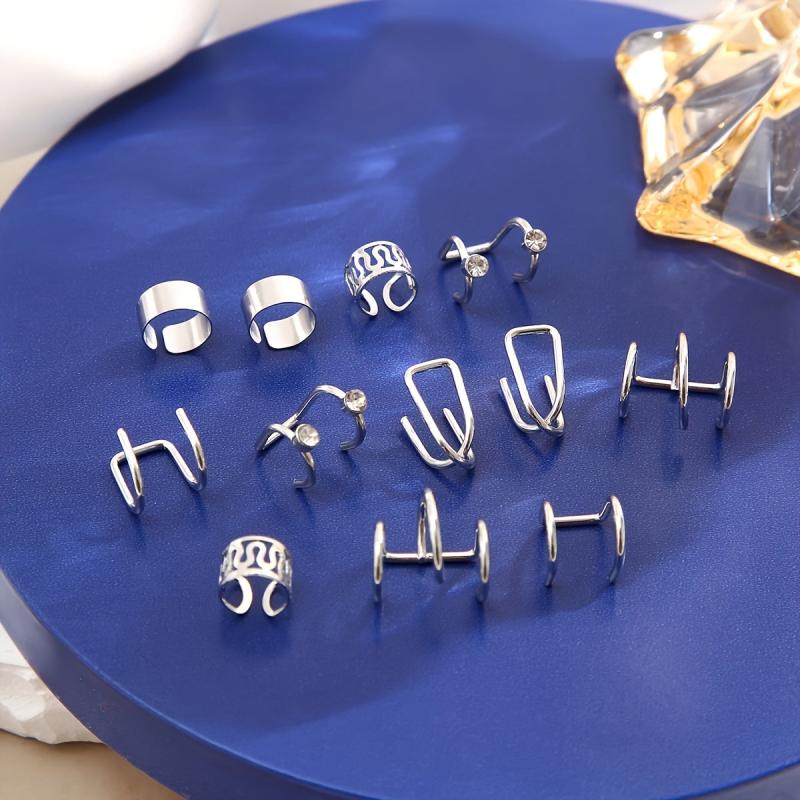 12pcs Geometric Cross Ear Cuff Set Stainless Steel Needle for Daily Wear