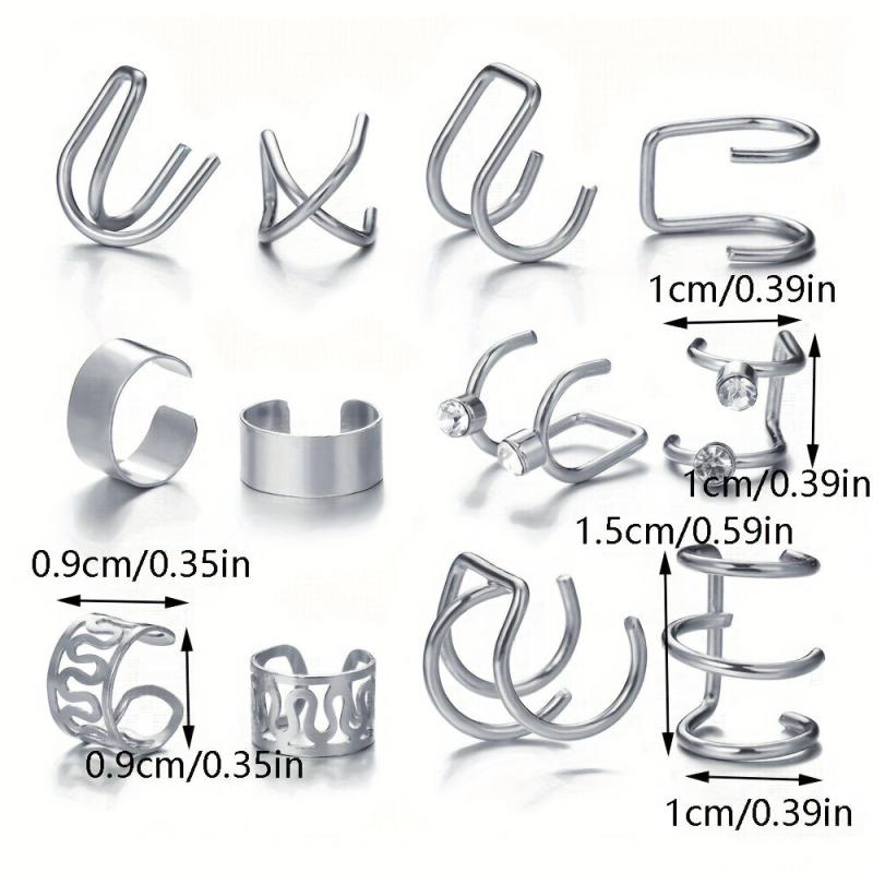 Elevate your style with this 12-piece ear cuff set featuring wide geometric cross designs. Made with alloy and stainless steel, these cuffs are versatile for daily wear and make a great gift. Perfect for Ramadan and beyond!