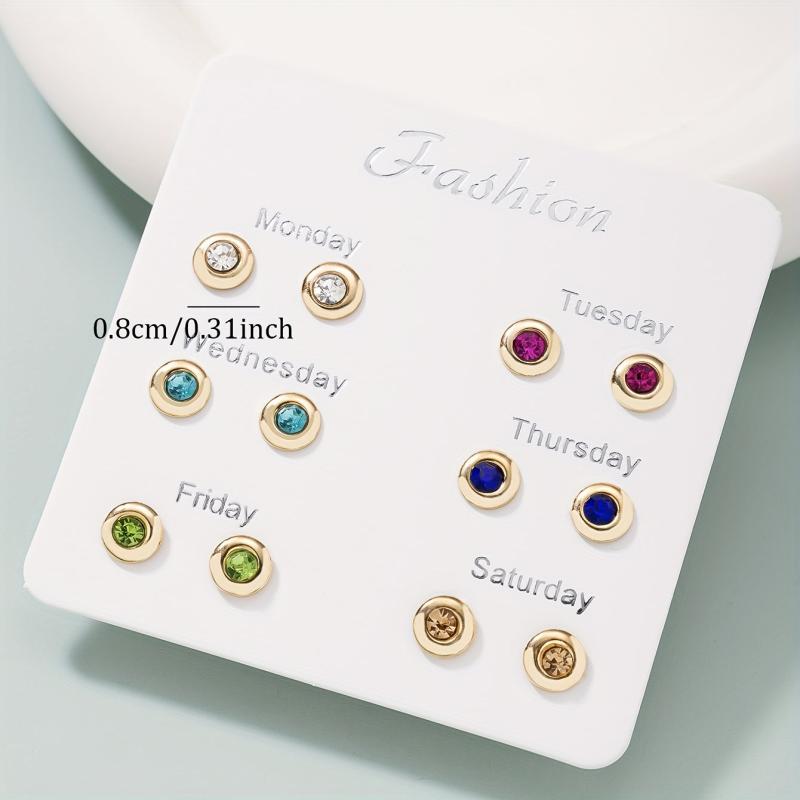 12pcs Rhinestones Round Holiday Daily Wear Earrings Set