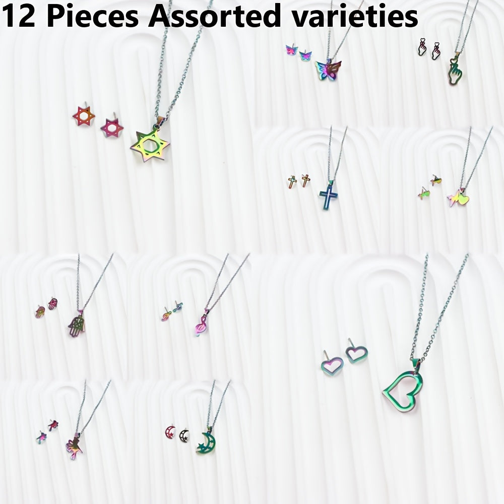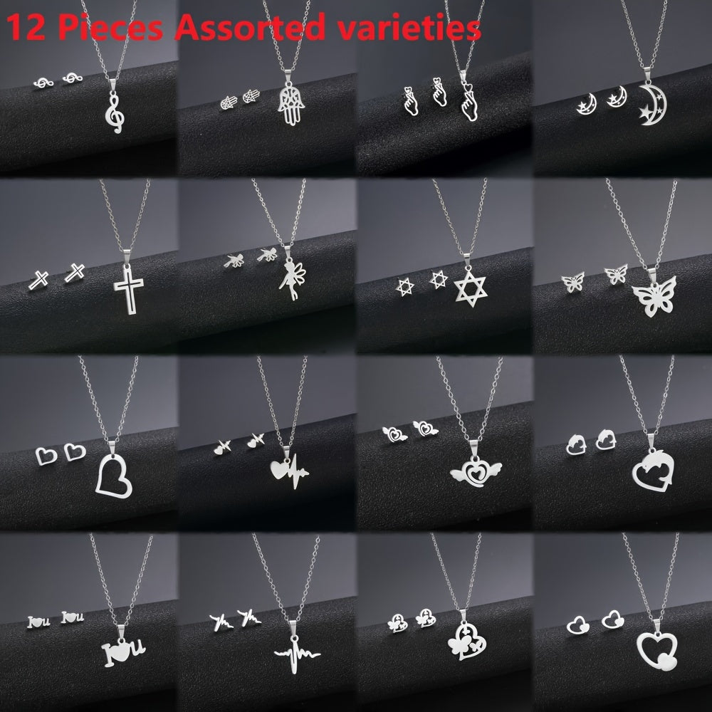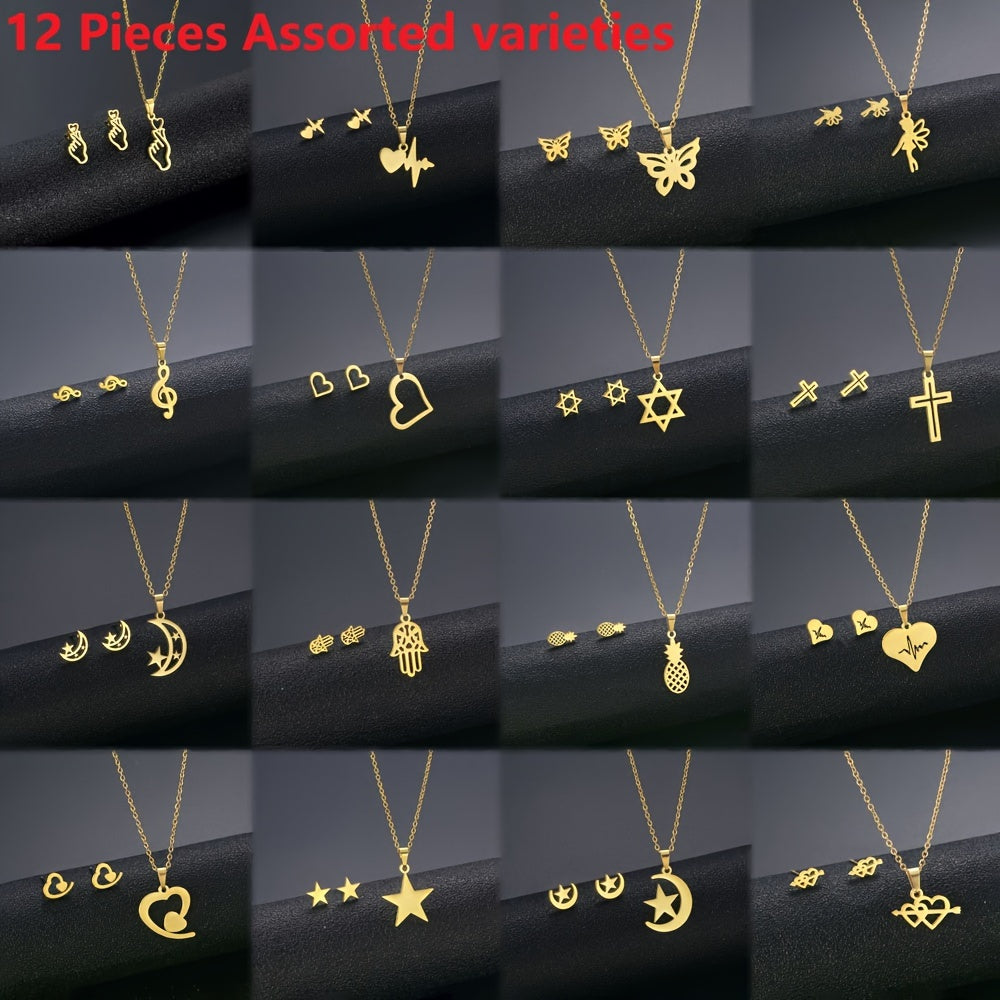 Elevate your style with this set of 12 stainless steel necklaces featuring heart, butterfly, and star charms. Perfect for daily wear or as a gift for women.