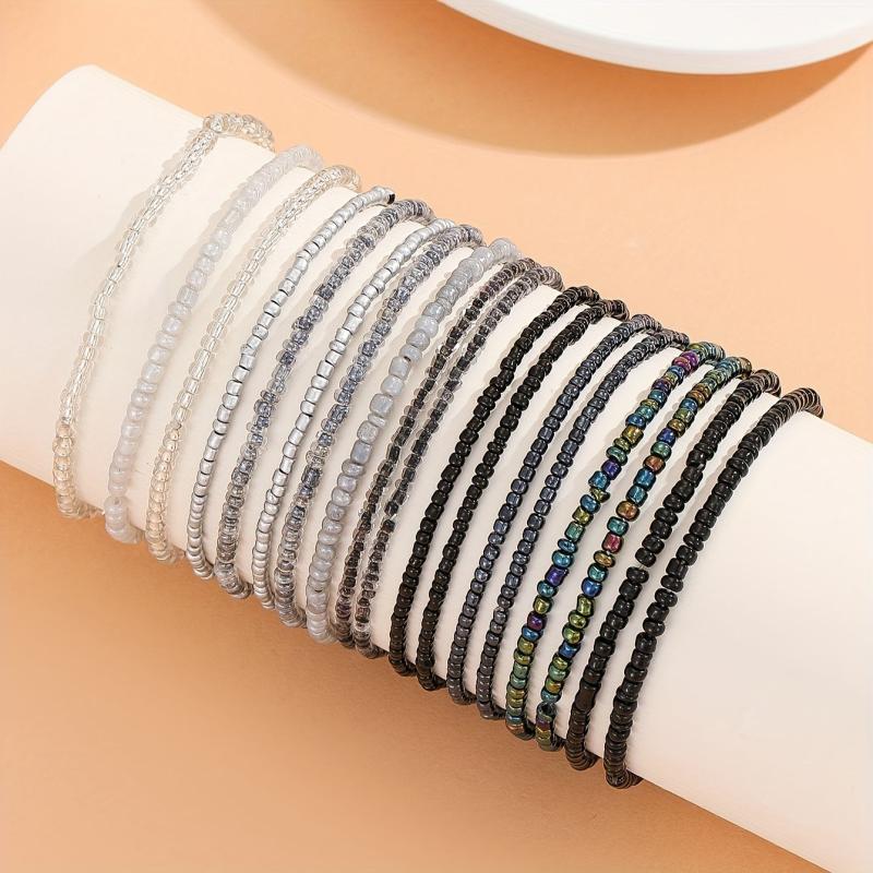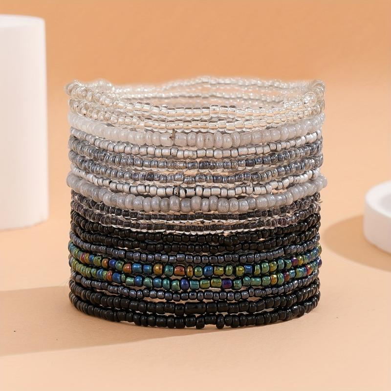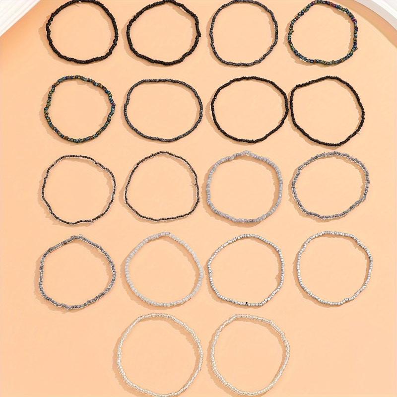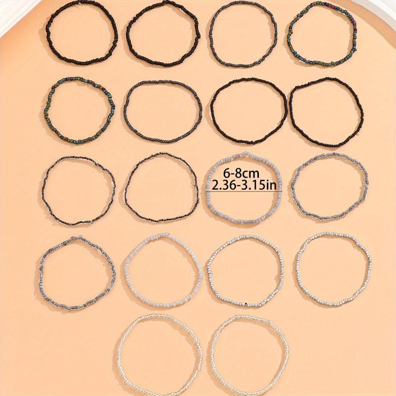 This 18 piece beaded bracelet set features an adjustable size, gradient design, and hip hop gothic style. Perfect for parties, music festivals, and everyday wear. Made without plating.