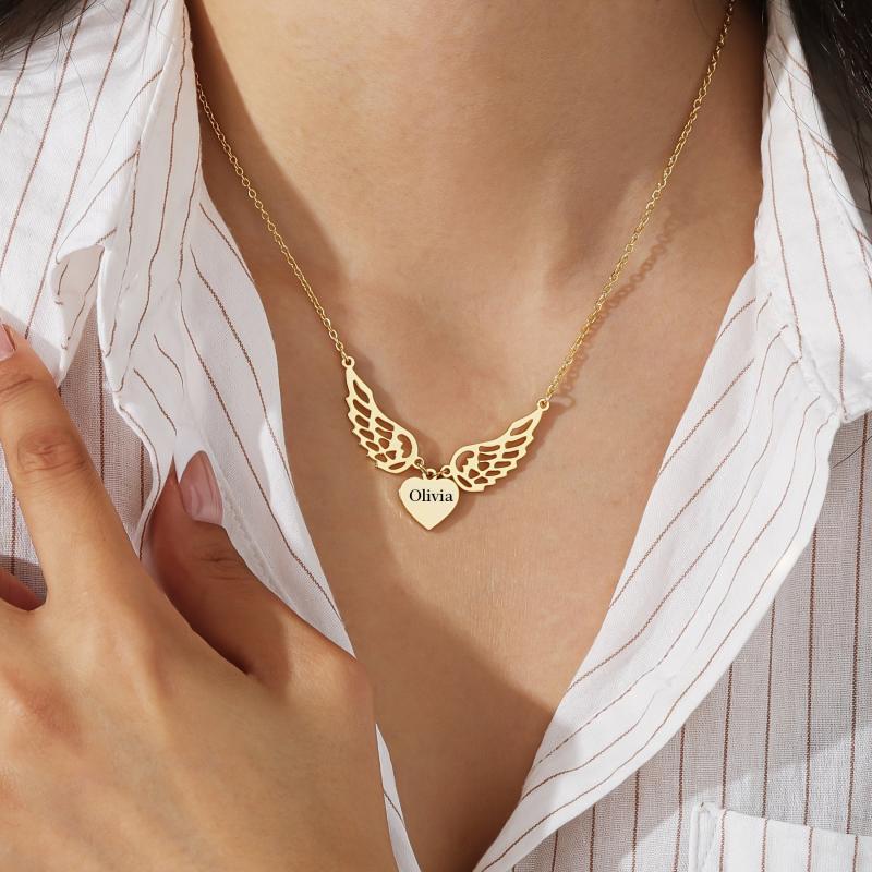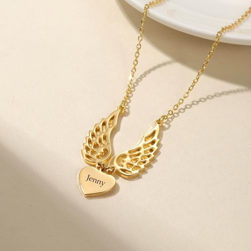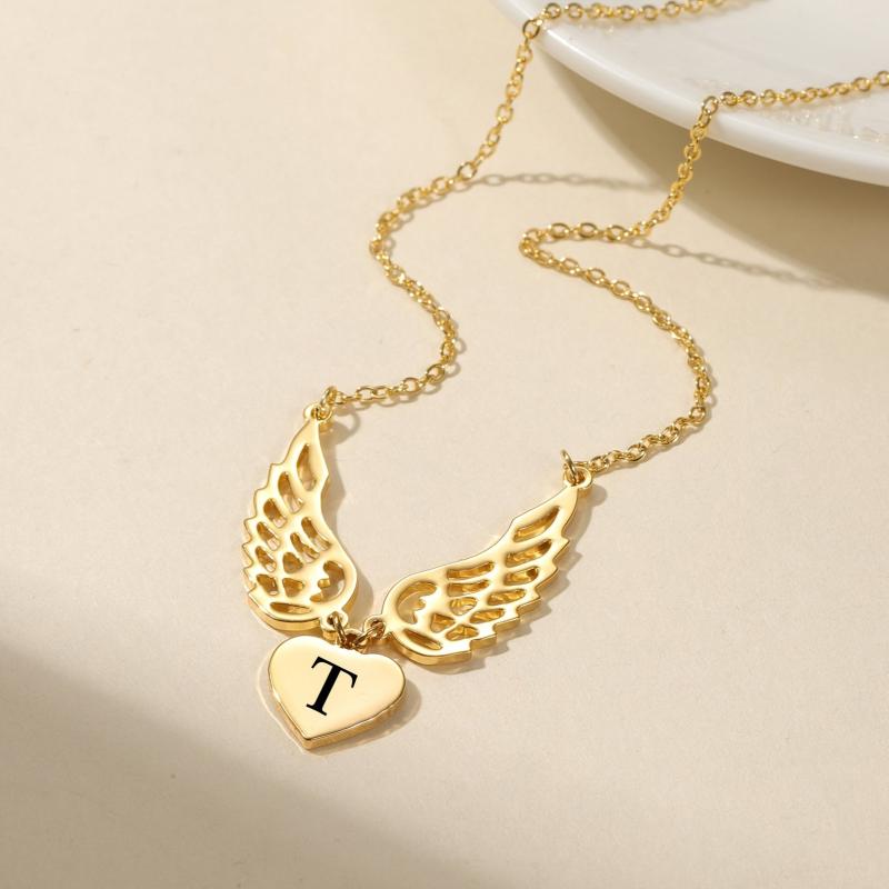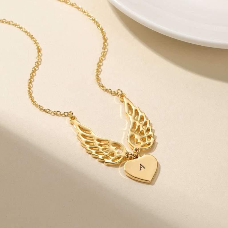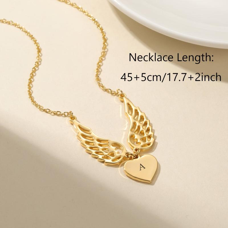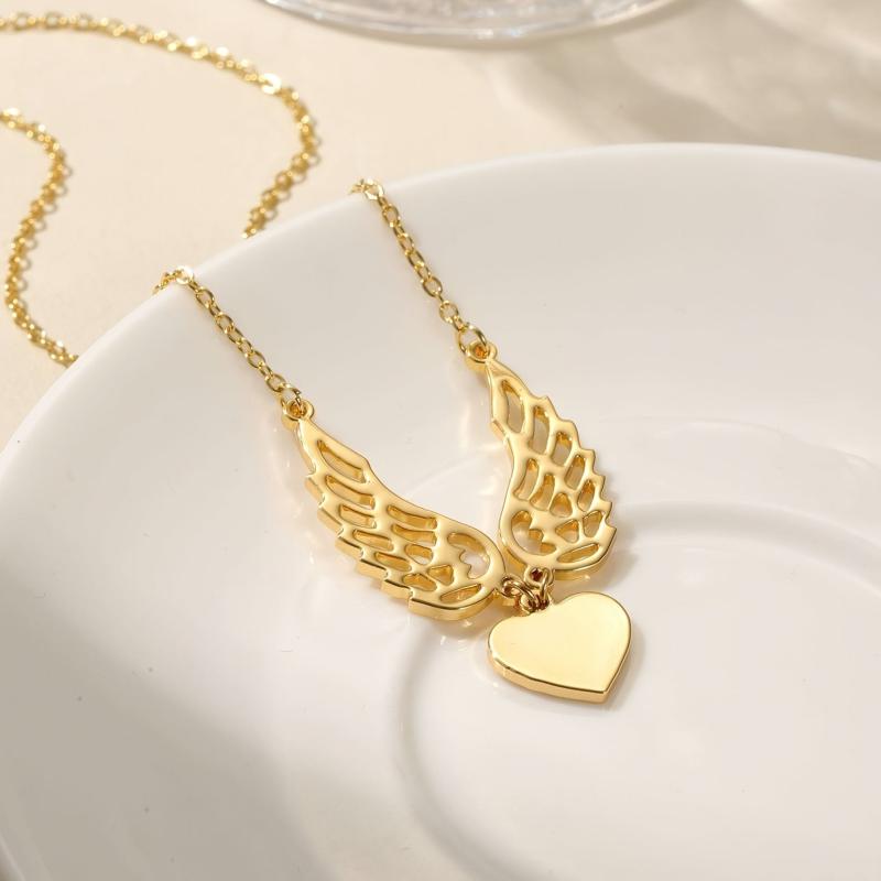 Elegant and stylish 18K gold plated stainless steel necklace featuring a hollow wing and heart pendant. Perfect for couples or as a thoughtful gift.