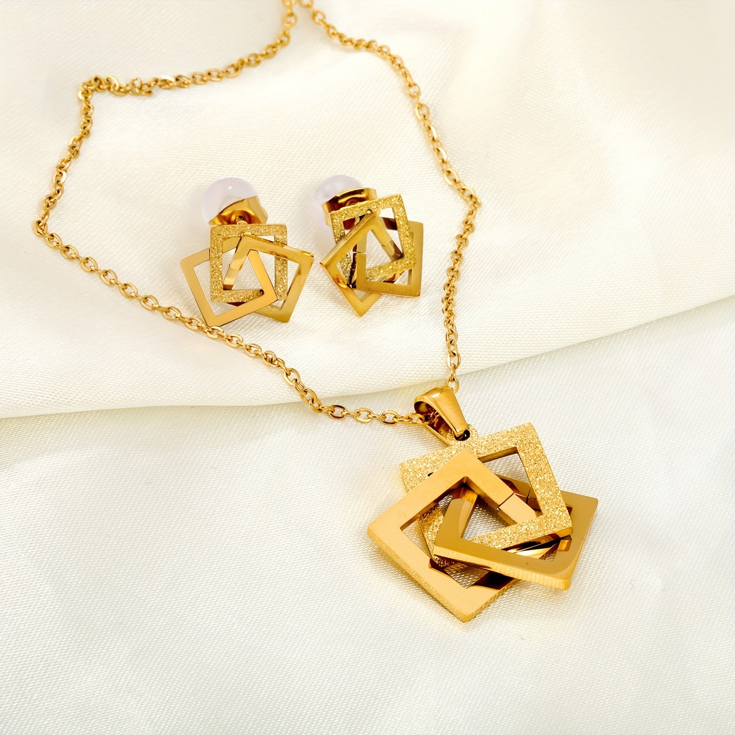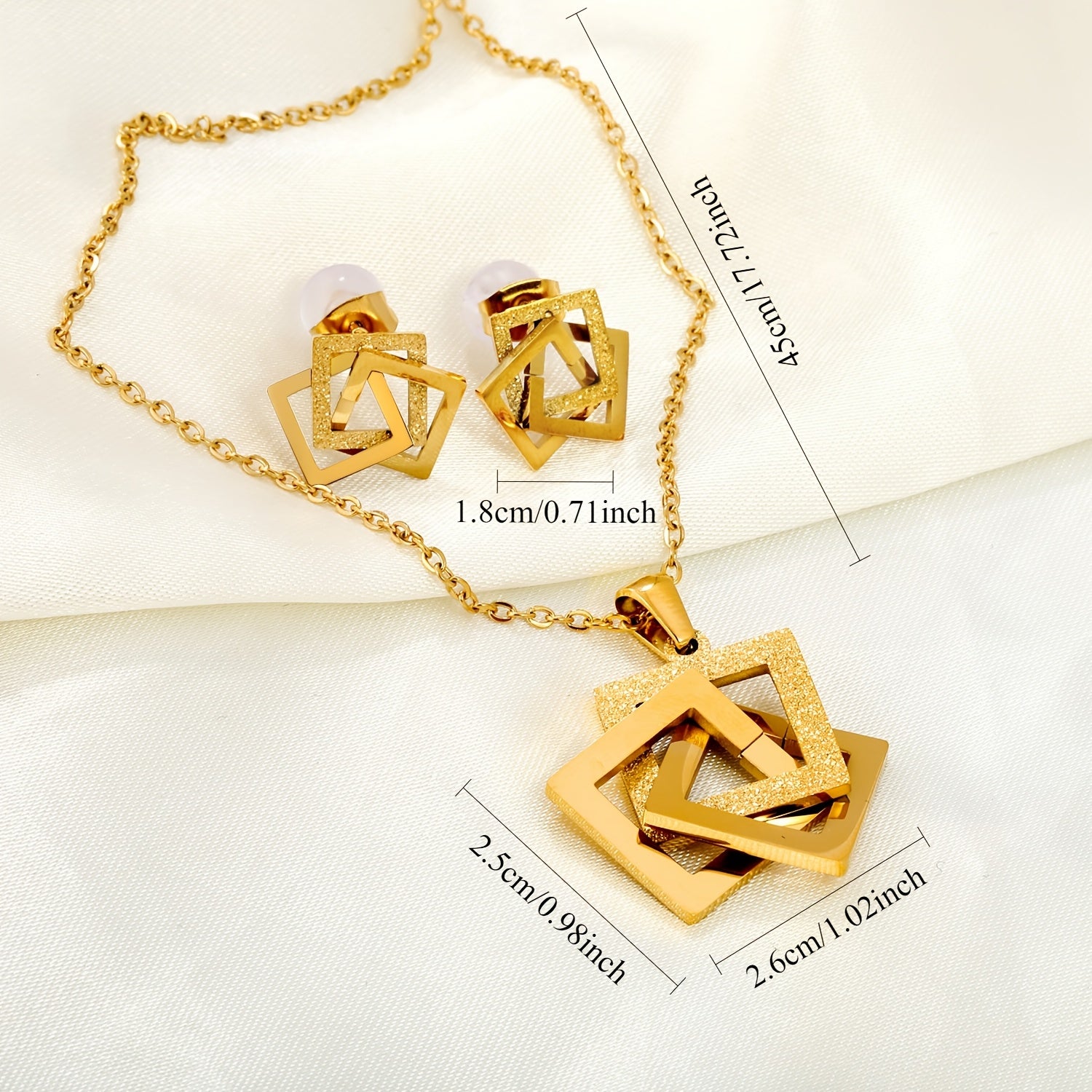 Elegant French jewelry set for women featuring creative and overlapping design. Made of 18K Golden plated stainless steel, this set is perfect for any occasion.