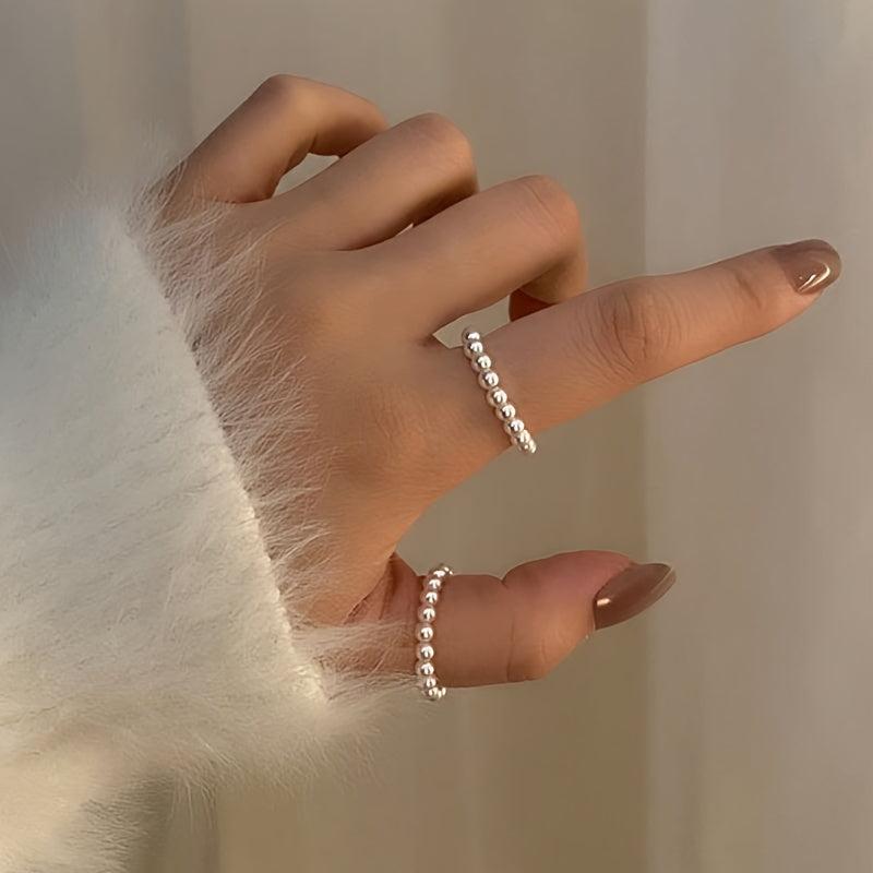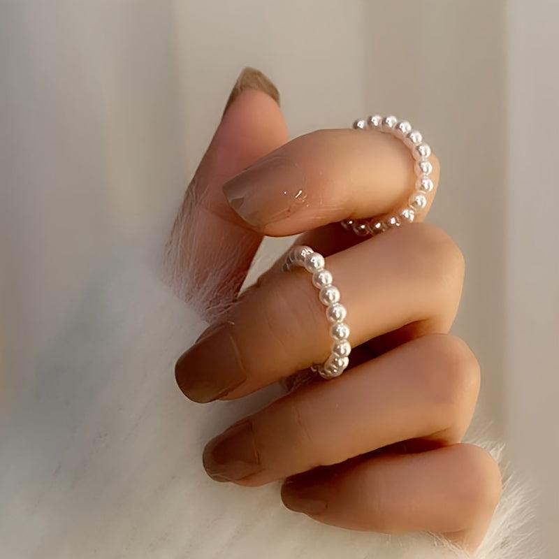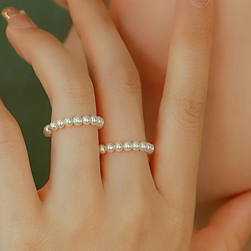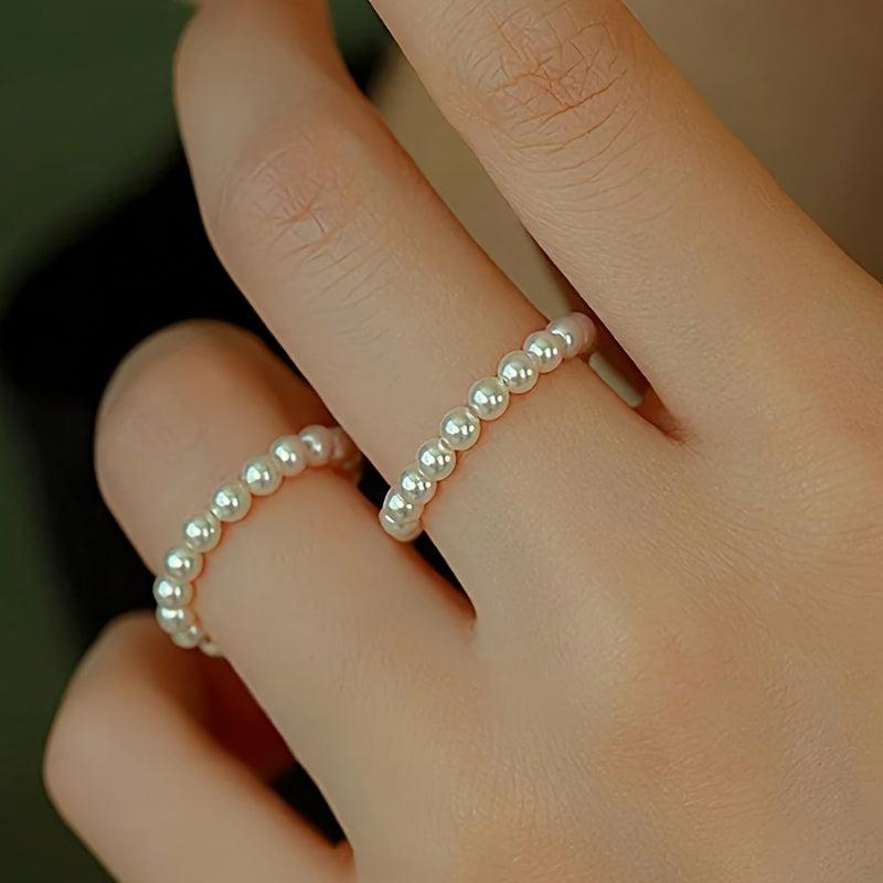 Add a touch of elegance with these 2 elastic artificial pearl rings. Suitable for daily wear, these personalized rings feature an adjustable elastic rope design. Set includes 2pcs.