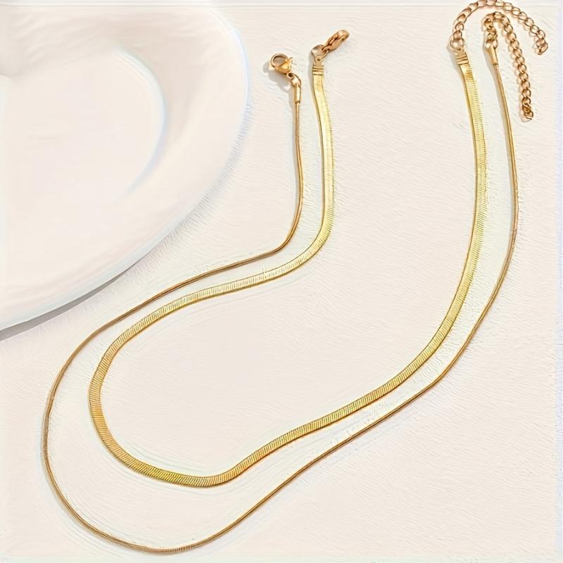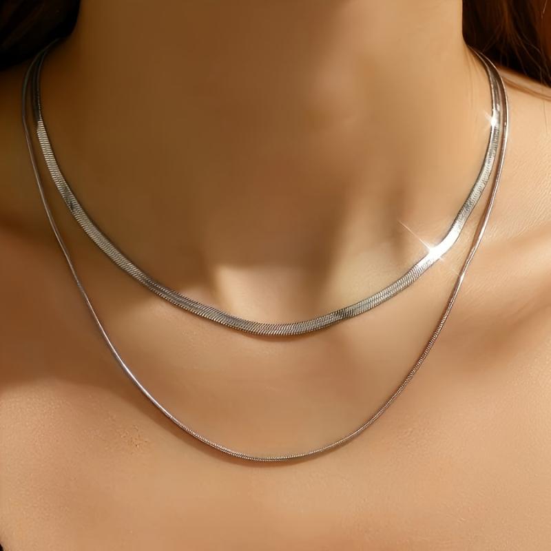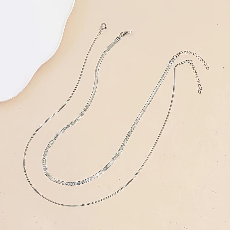 Elevate your casual outfits with this two-piece chain necklace set. Includes one thick snake chain and one thin snake chain for versatile styling.