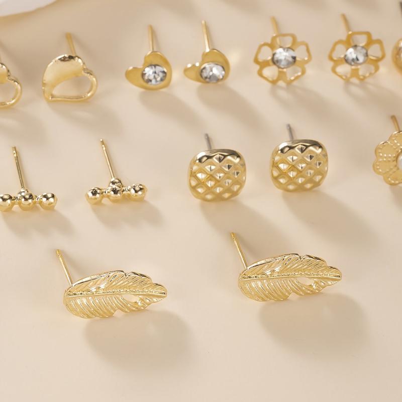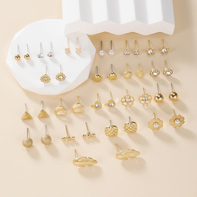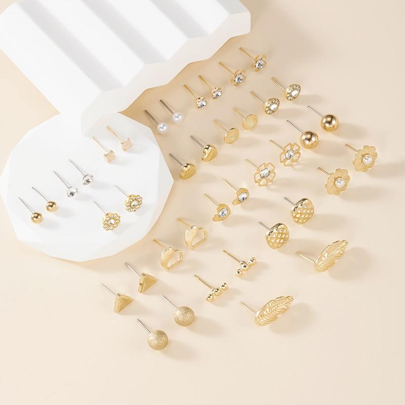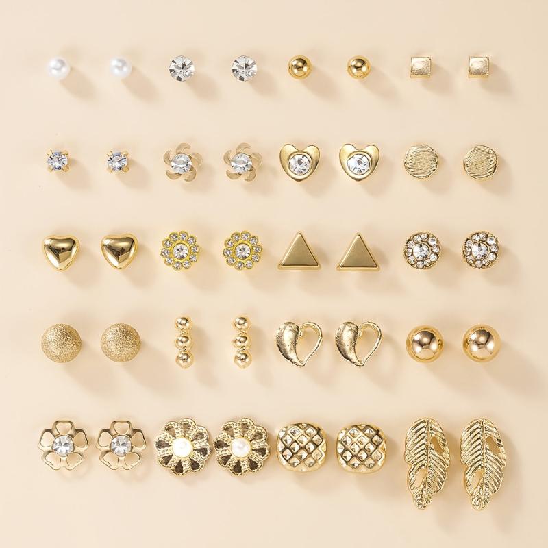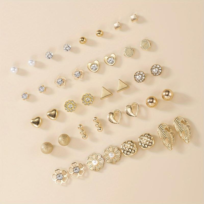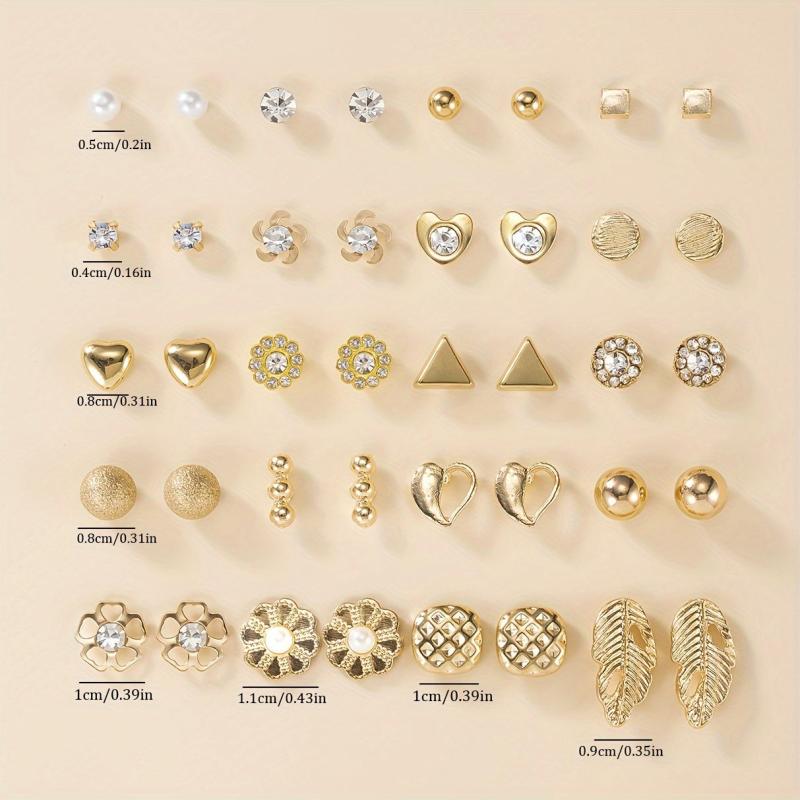 This set includes a variety of earrings in different shapes such as geometric, letter, rhinestone, pearl, leaf, and heart designs. Made of high-quality zinc alloy and stainless steel, these earrings are versatile for daily wear.