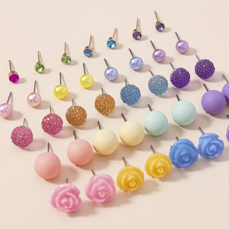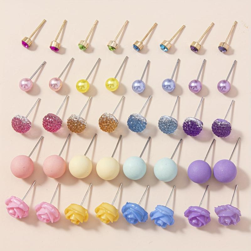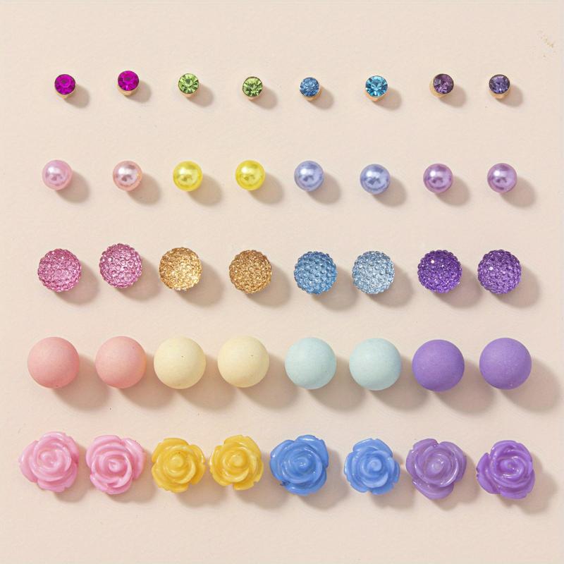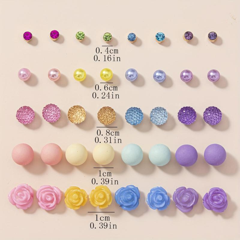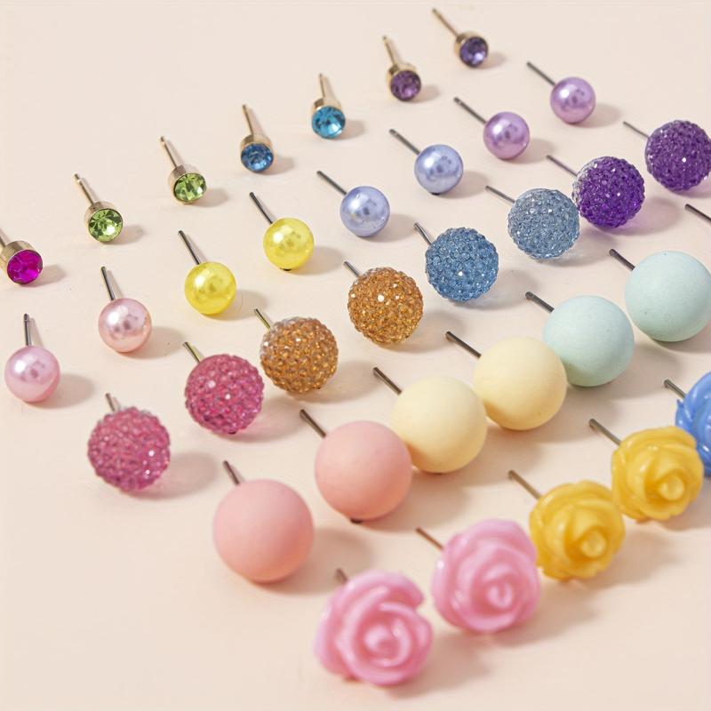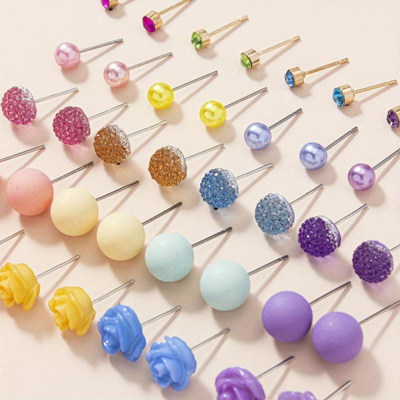 Add a pop of color to your outfits with this set of 20 pairs of women's earrings featuring vibrant resin pearls and flowers. Perfect for adding a fun and stylish touch to your look.