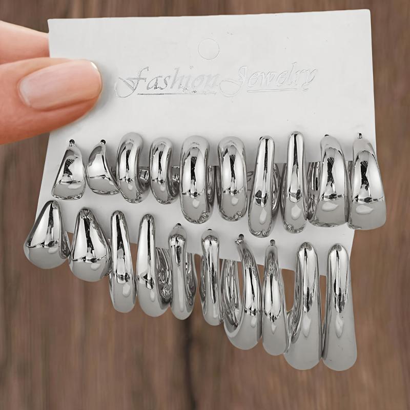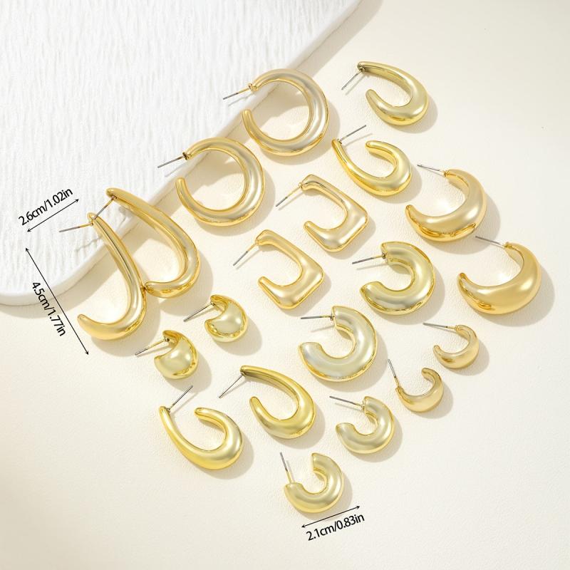 These hoop earrings are perfect for all season wear, offering a versatile style suitable for daily wear or party occasions. Each set includes 20 pieces of earrings.