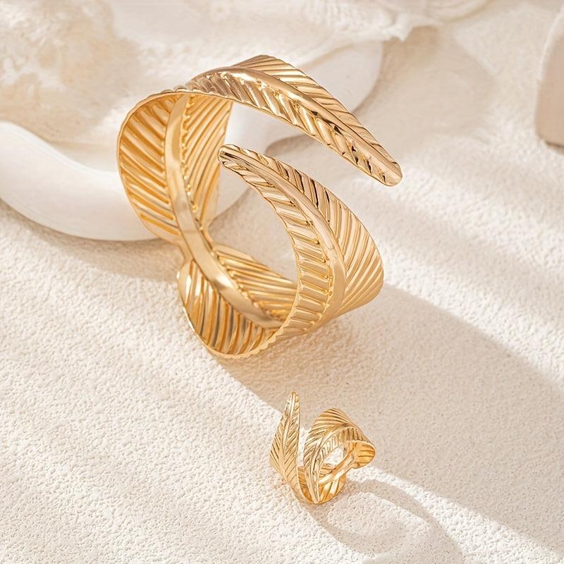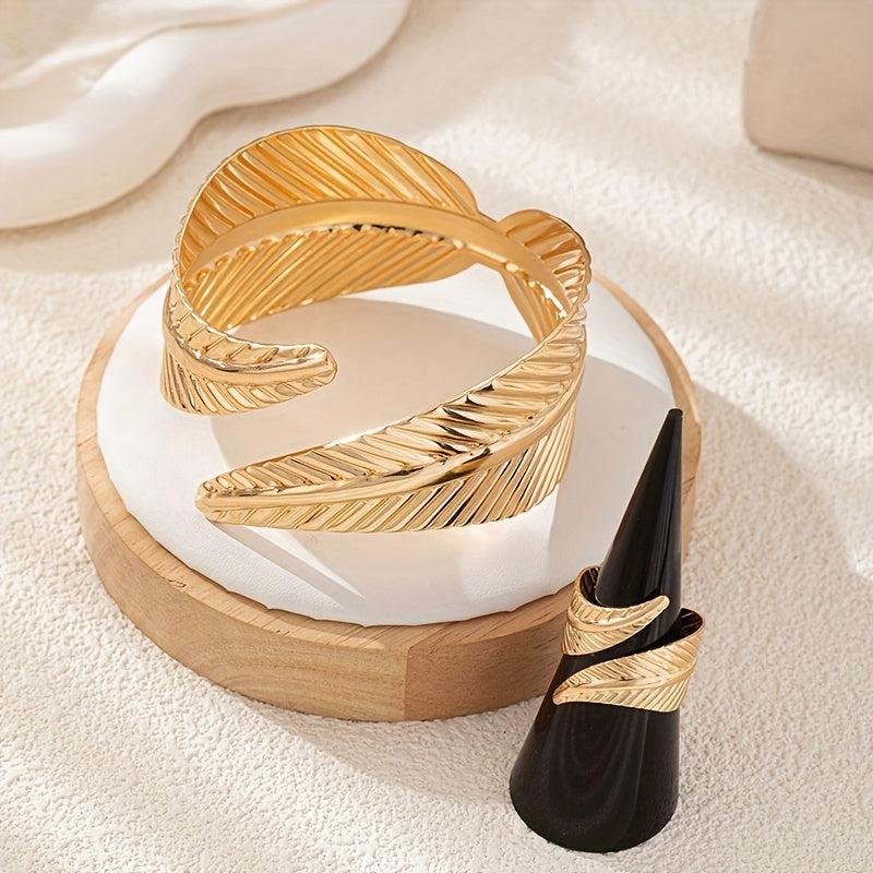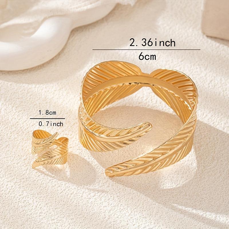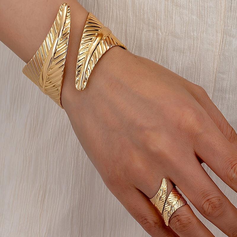Elevate your style with these bohemian leaf bangle set featuring an adjustable design and dangling charms. Perfect for daily wear, vacation, and parties.