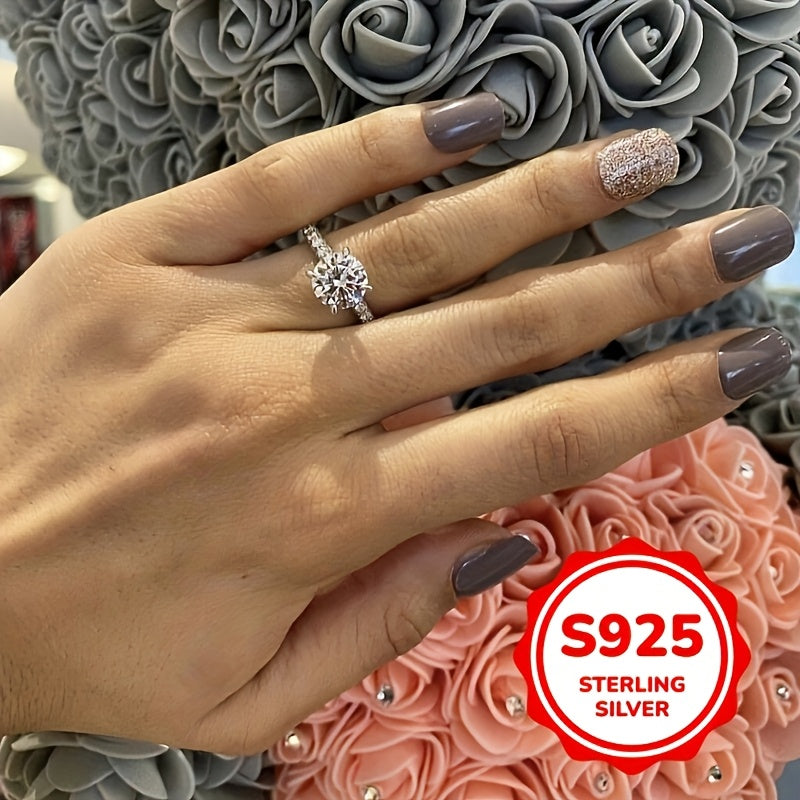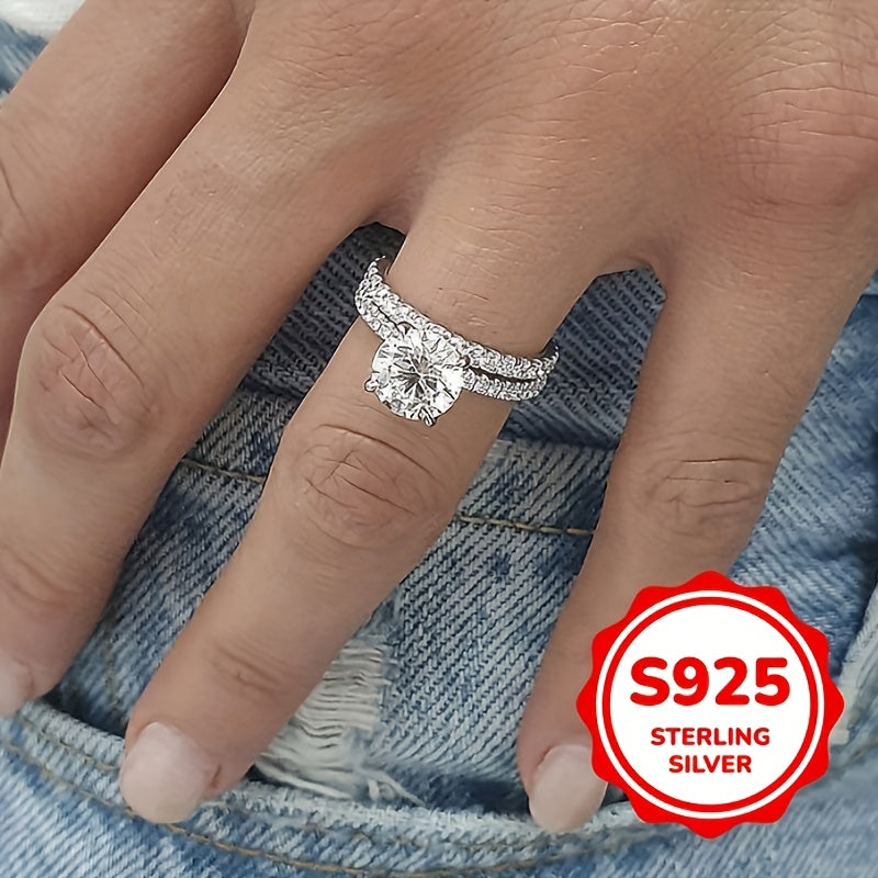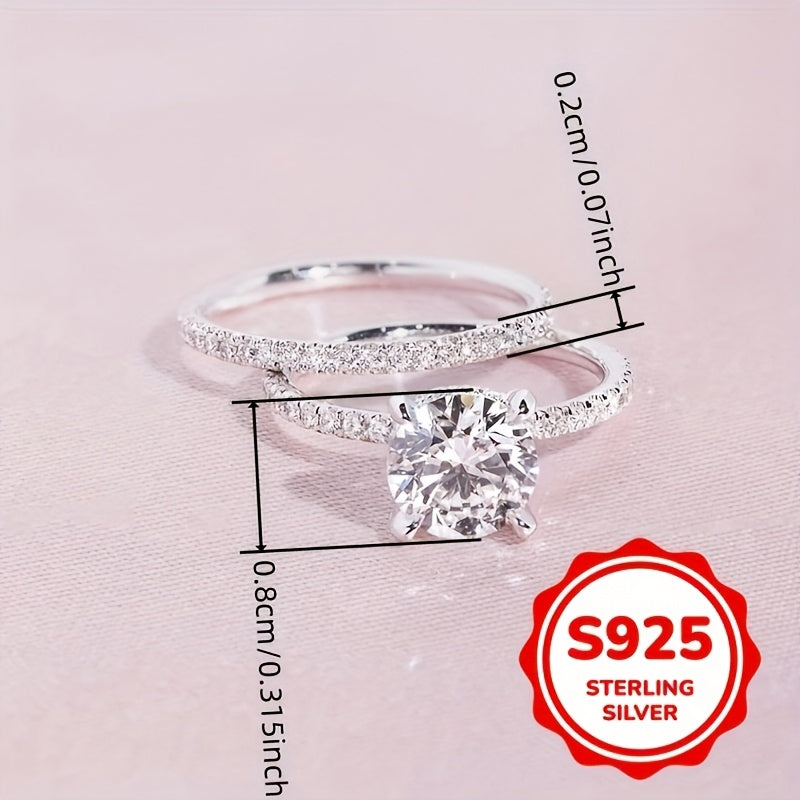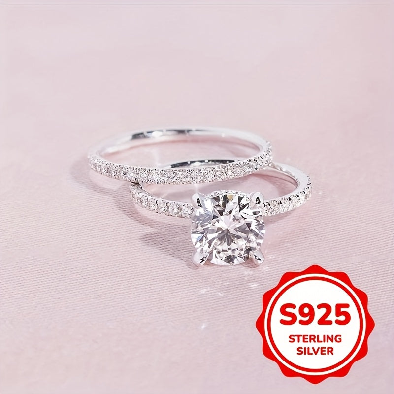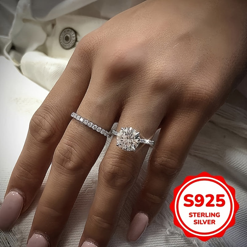 Elegant anniversary ring set made of 925 sterling silver with synthetic zirconia stones. Perfect for gifts and proposals.