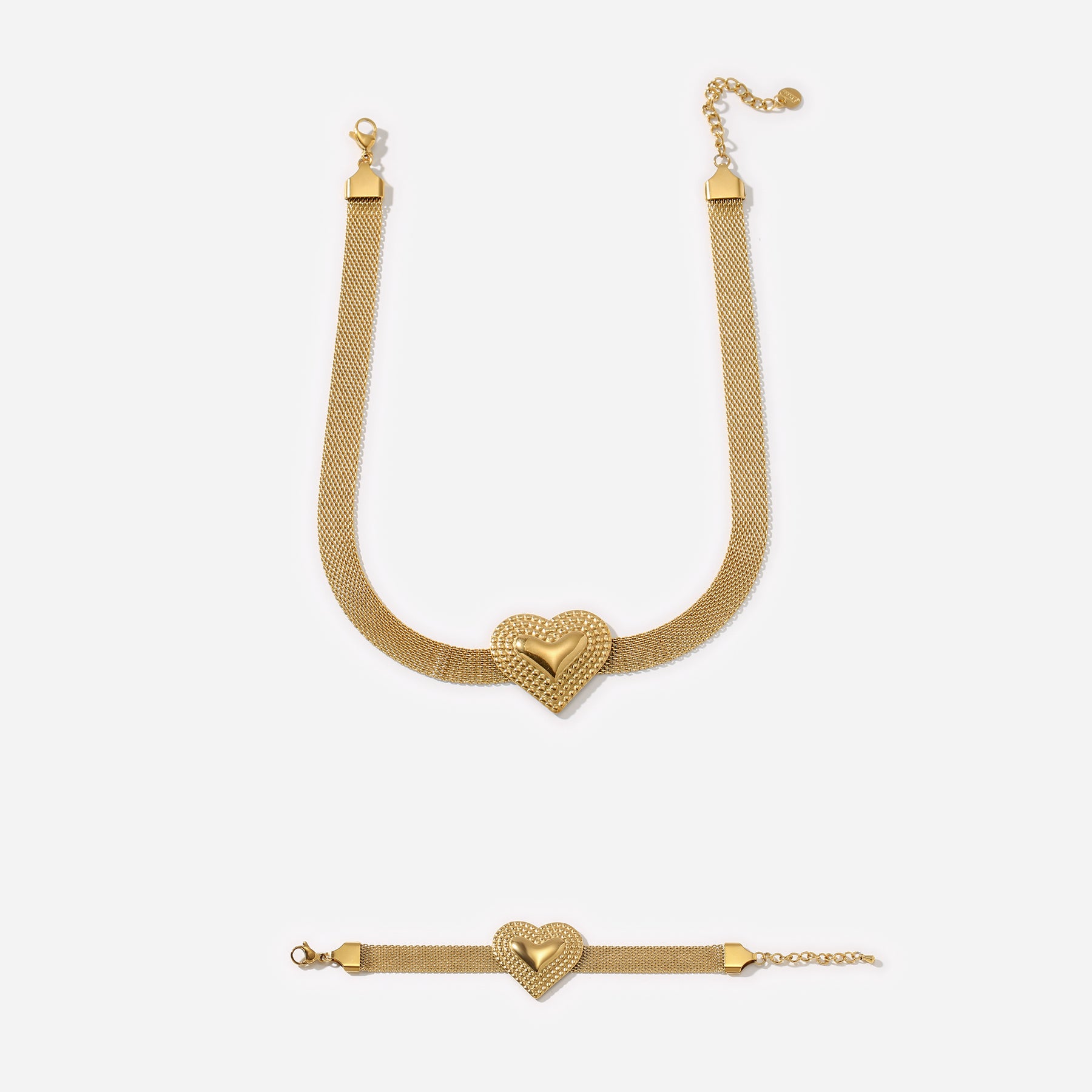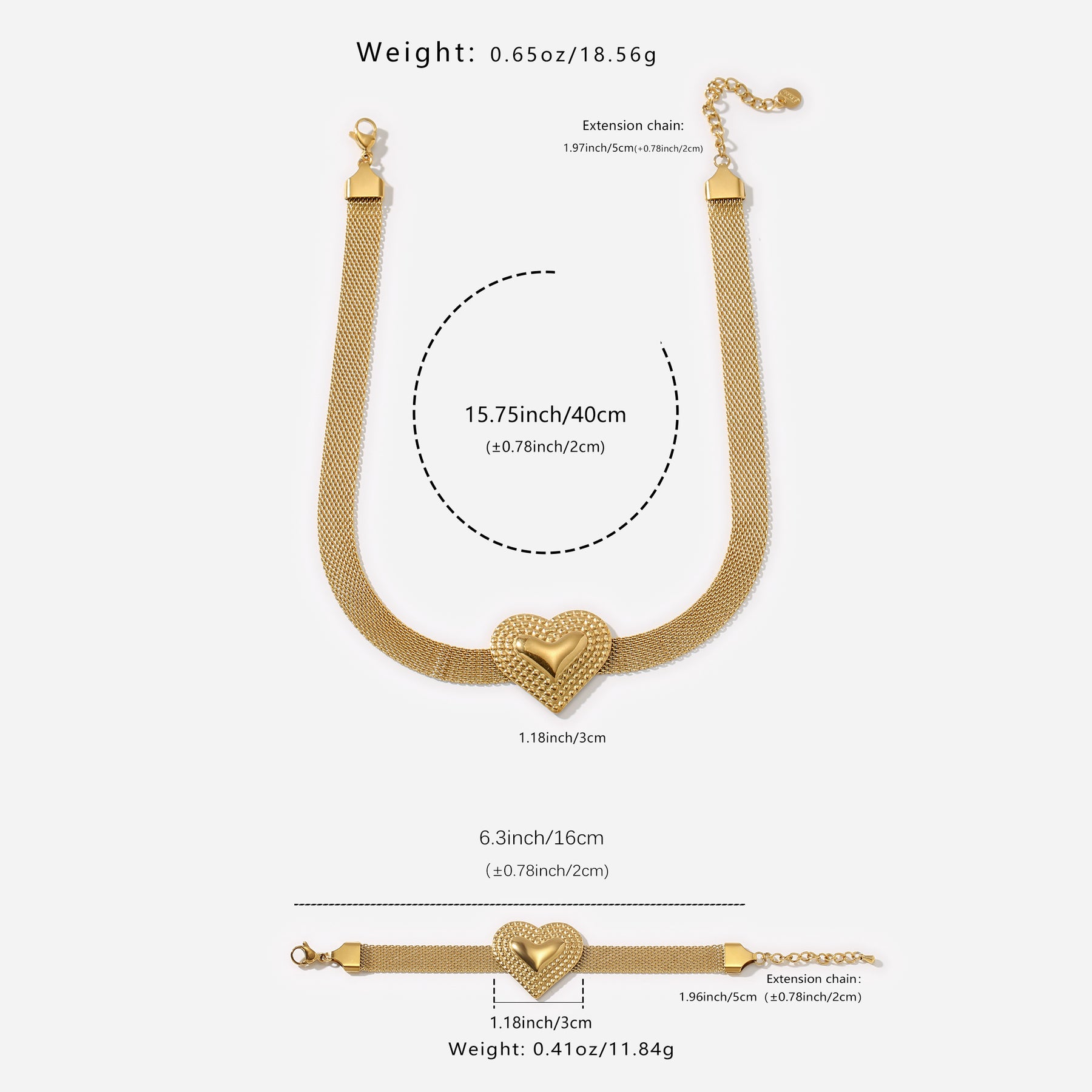 Enjoy this set of necklace and bracelet with heart decoration. Made from hypoallergenic stainless steel, perfect for daily wear, shopping, and vacation.