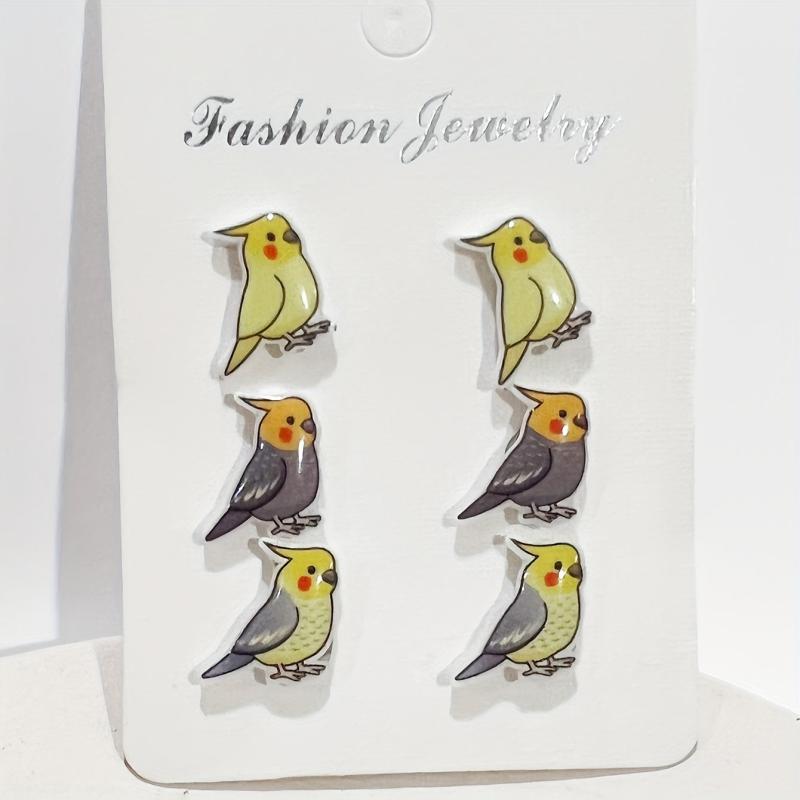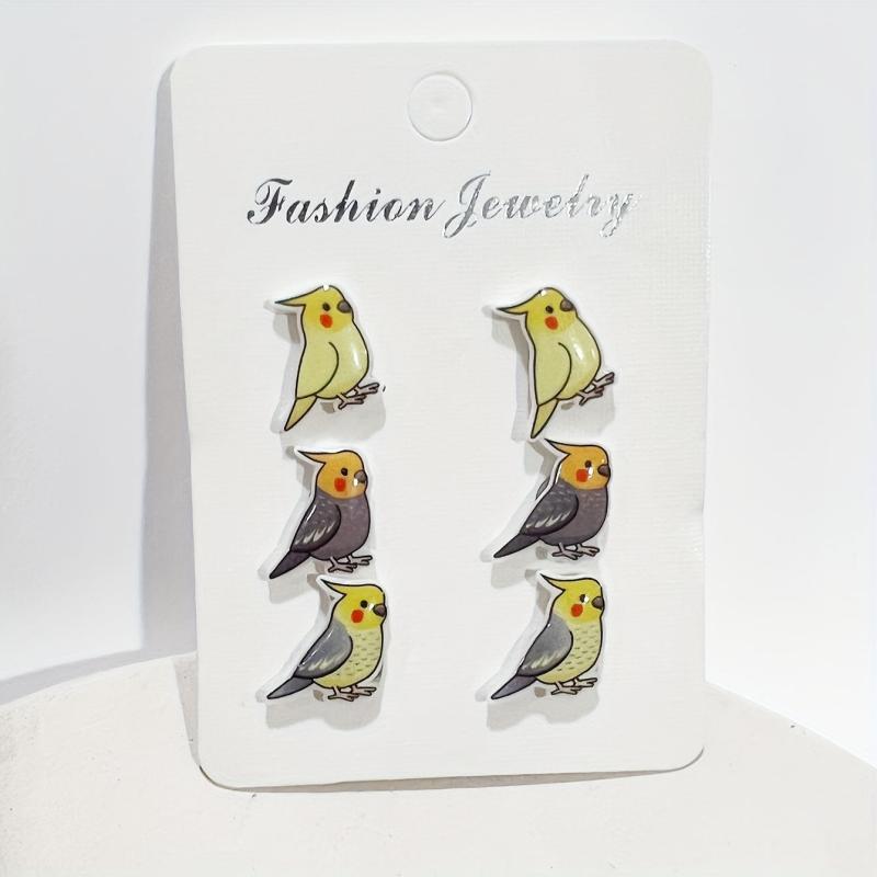 These adorable bird stud earrings come in a set of 3 pairs with vibrant colors. Lightweight and hypoallergenic, they are perfect for everyday wear or as a gift for her.