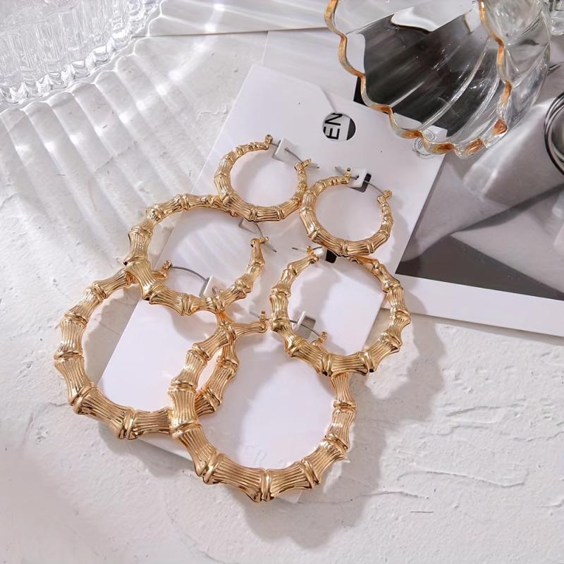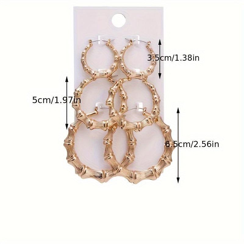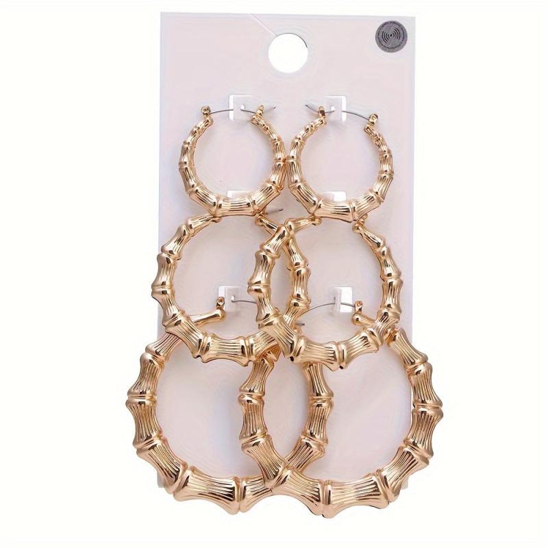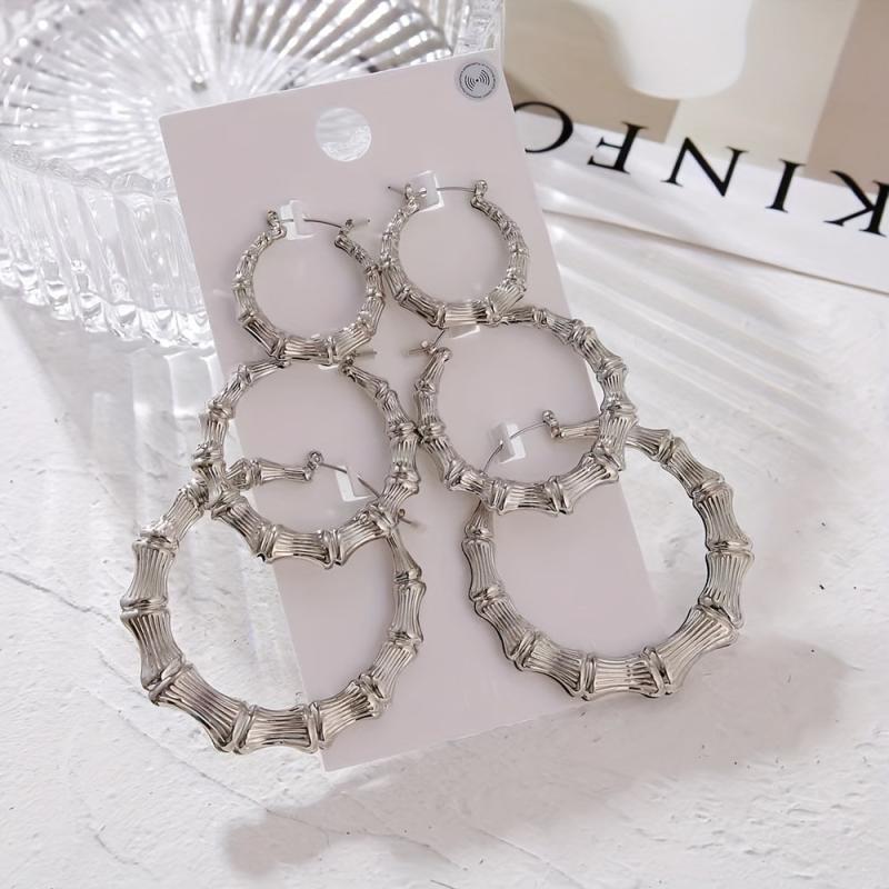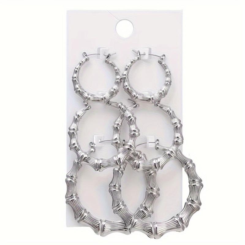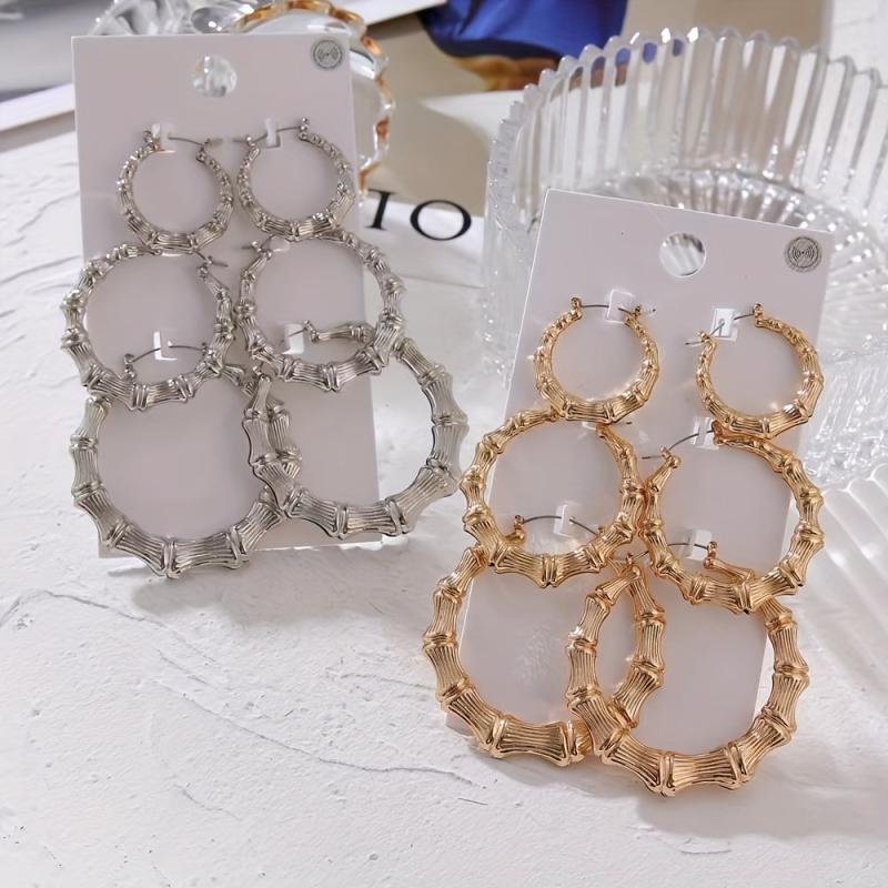 Set of 3 unique high earrings with hip-hop and punk style, made of bamboo materials.