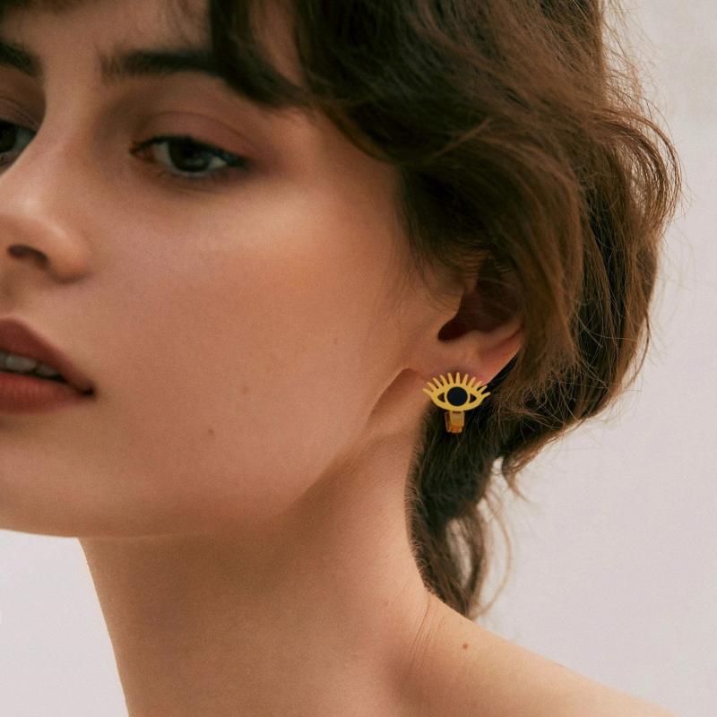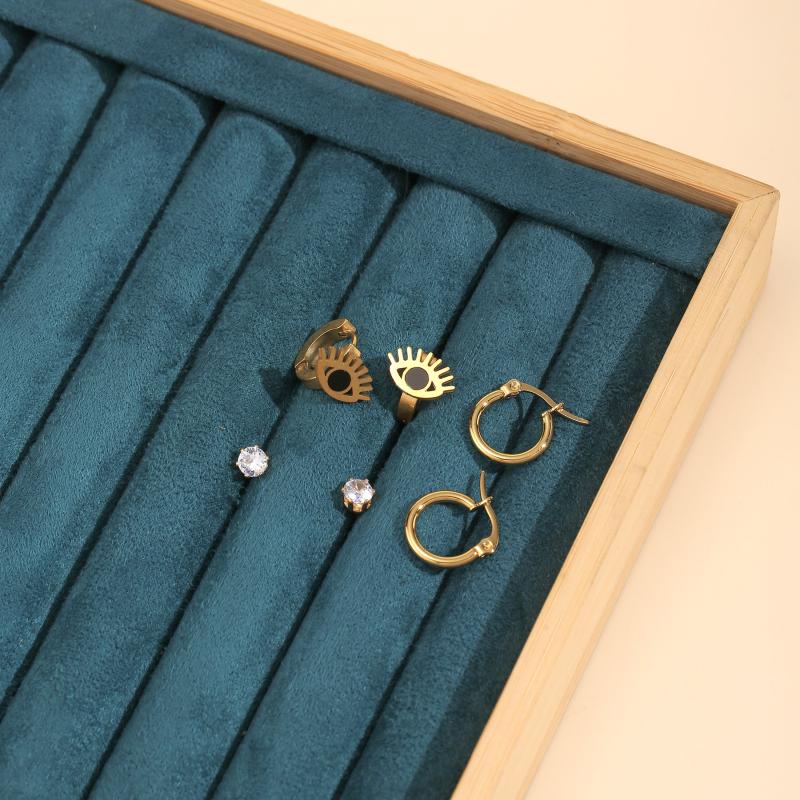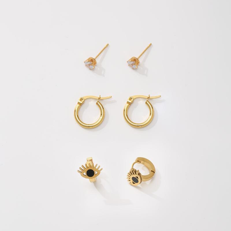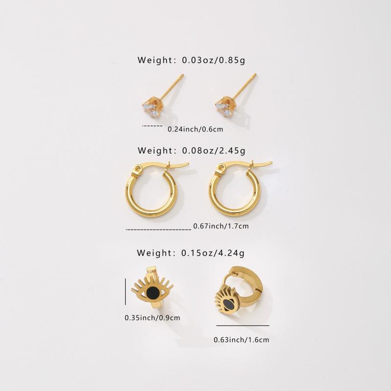 Add a touch of elegance to your outfits with this set of 3 stainless steel earrings featuring eye design with gemstone accents. Perfect for parties, vacations, and beach outings.