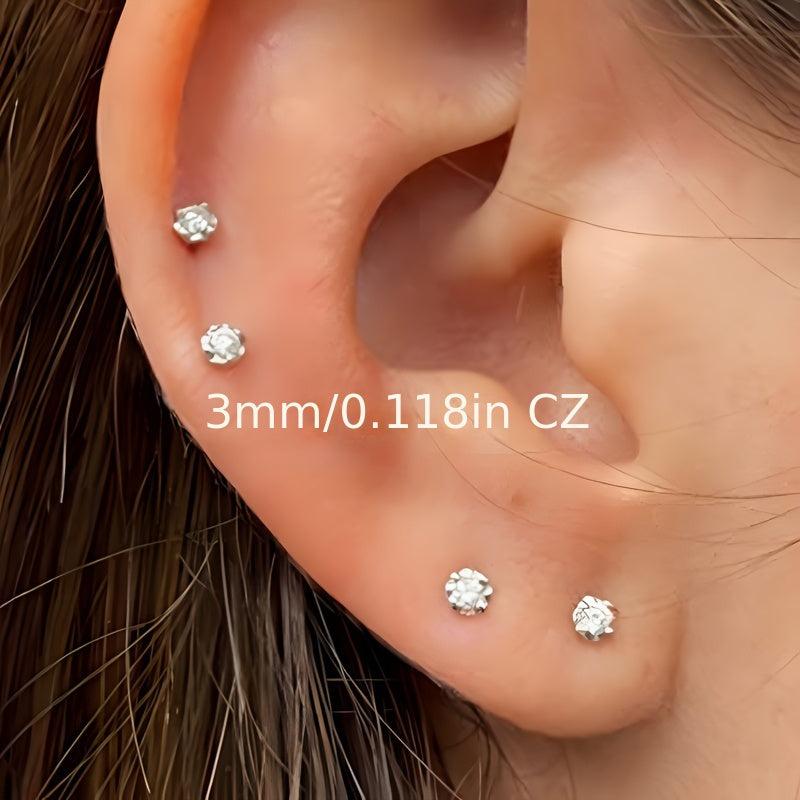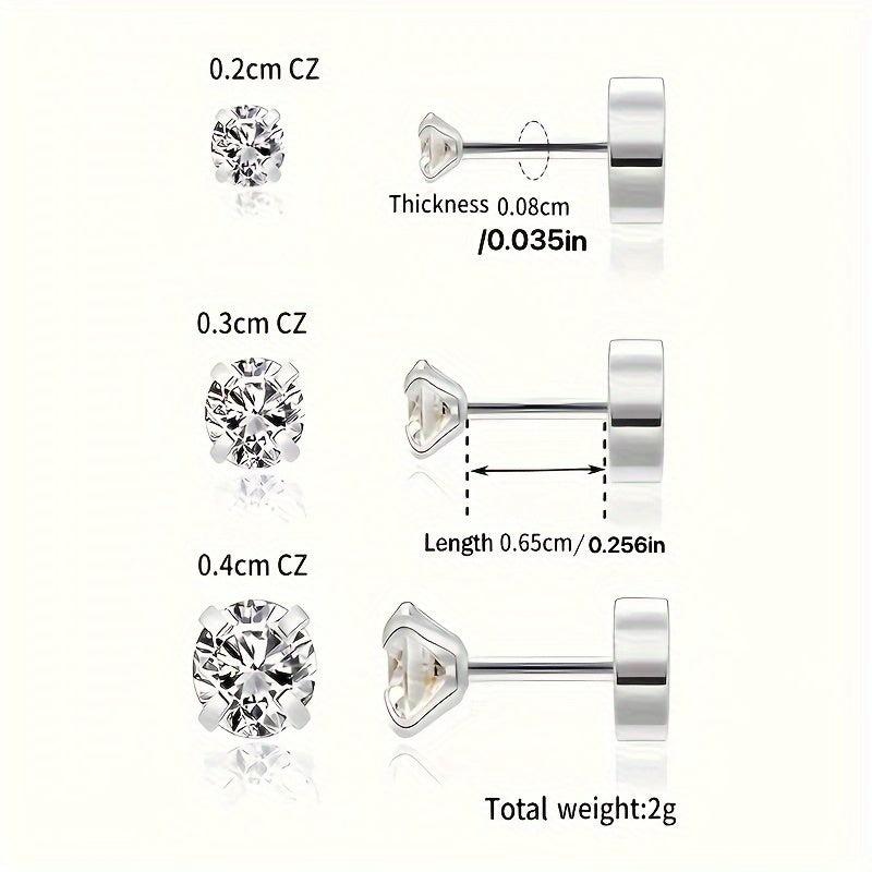 Add a touch of sparkle to your look with these versatile synthetic zirconia square earrings. Perfect for casual wear, these earrings measure 2 4mm and come in a set of 3 pairs.