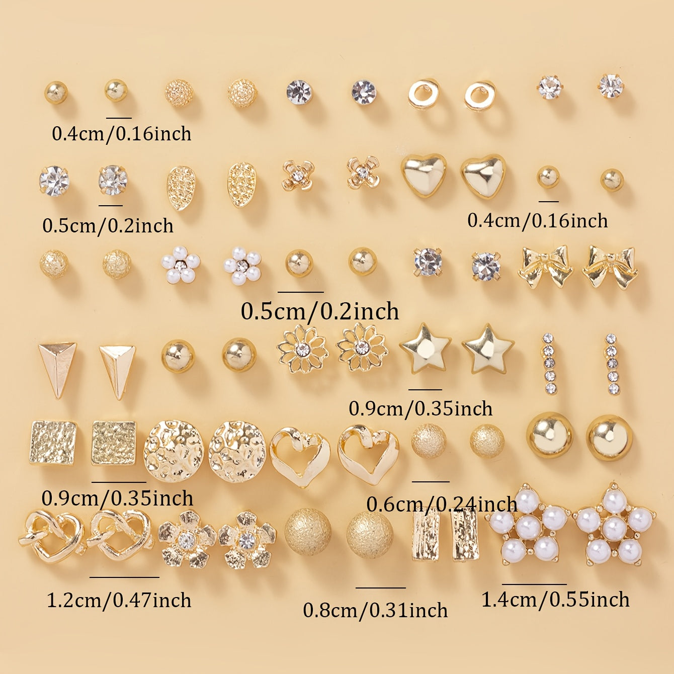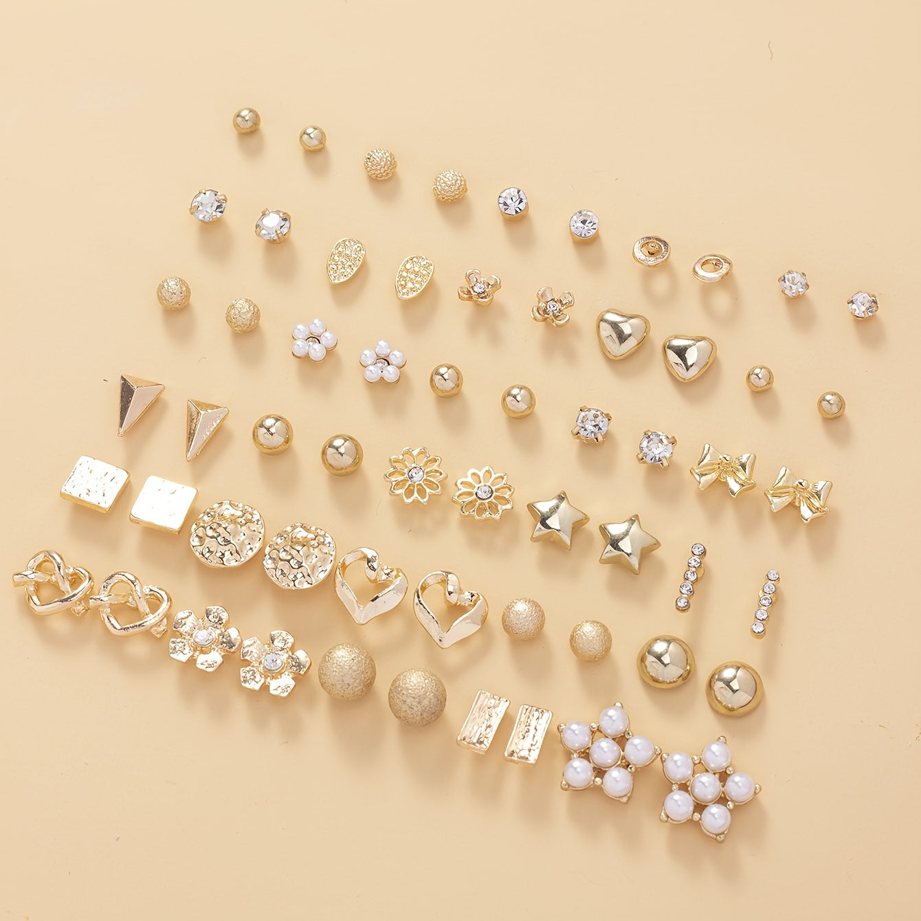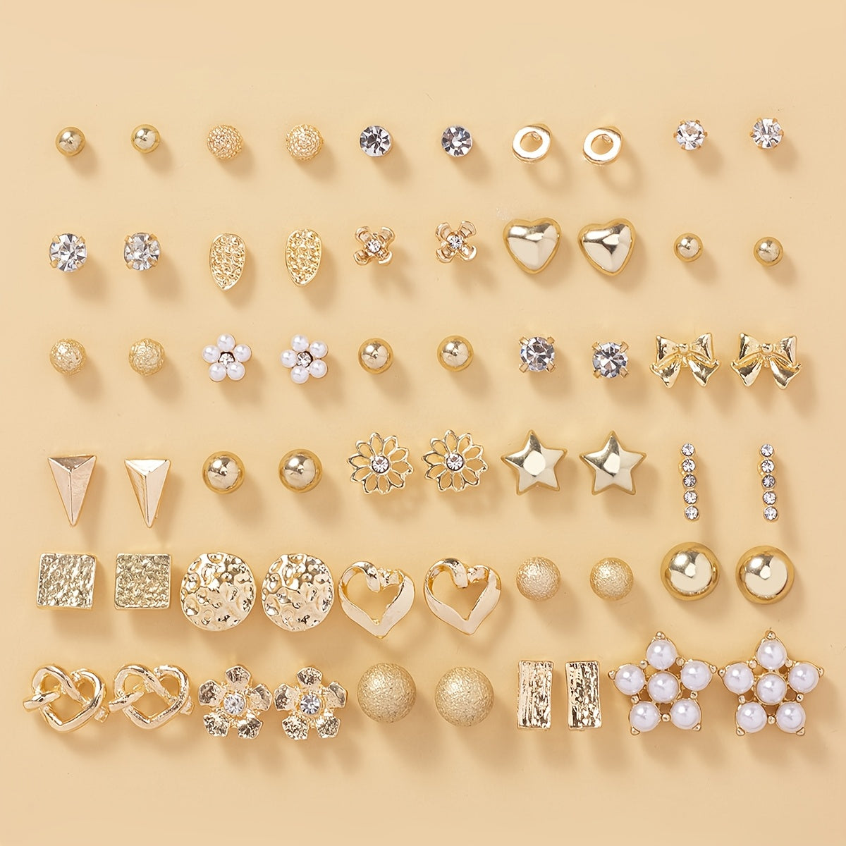 This set includes heart-shaped, flower, bowknot, matte, faux geometric, and metal earrings for daily wear.