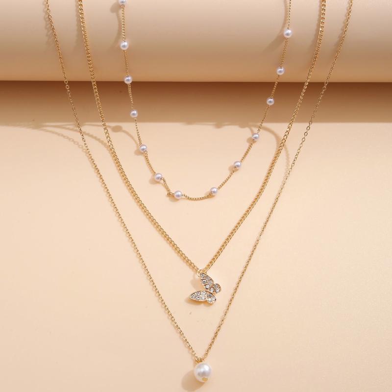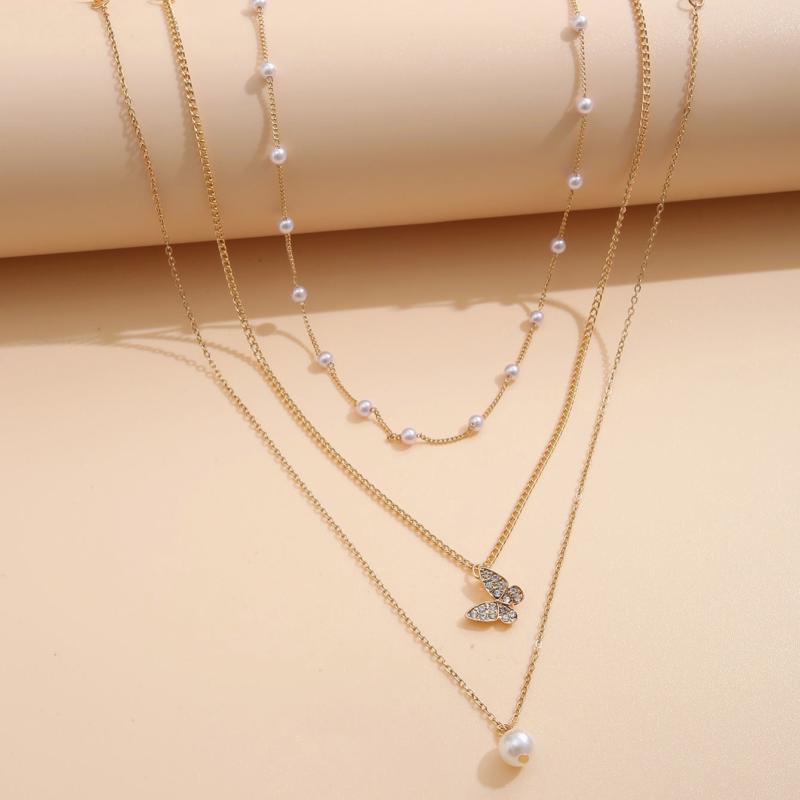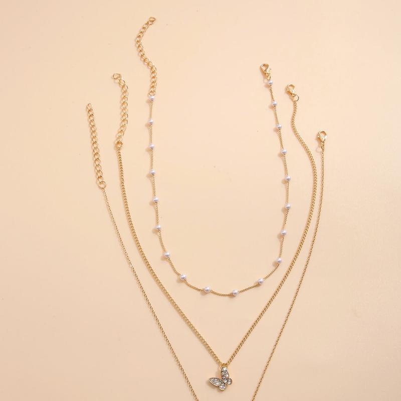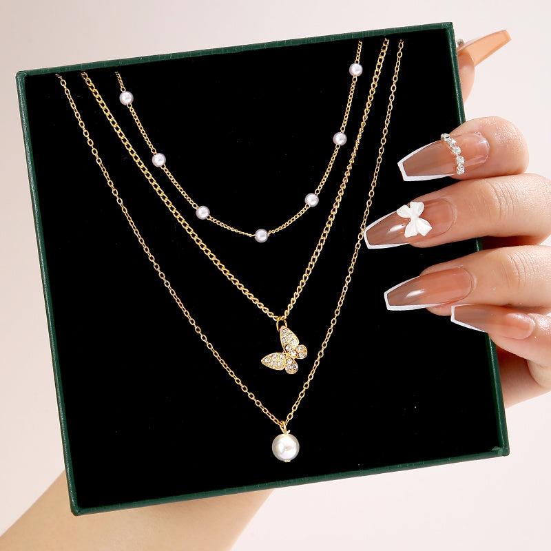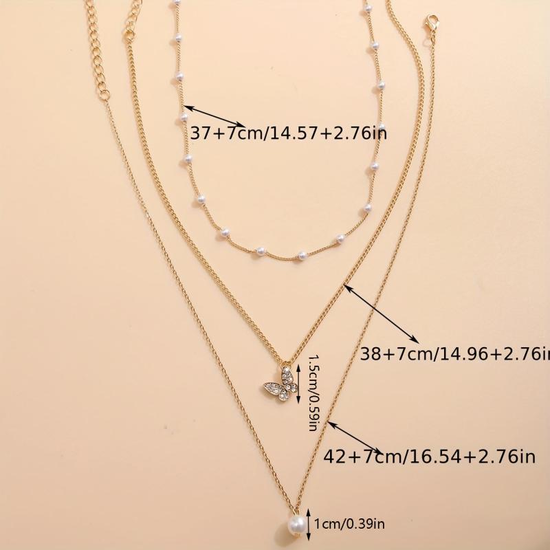 Complete your look with this elegant 3-piece butterfly pendant necklace set. The set includes three necklaces featuring delicate butterfly pendants in different styles.