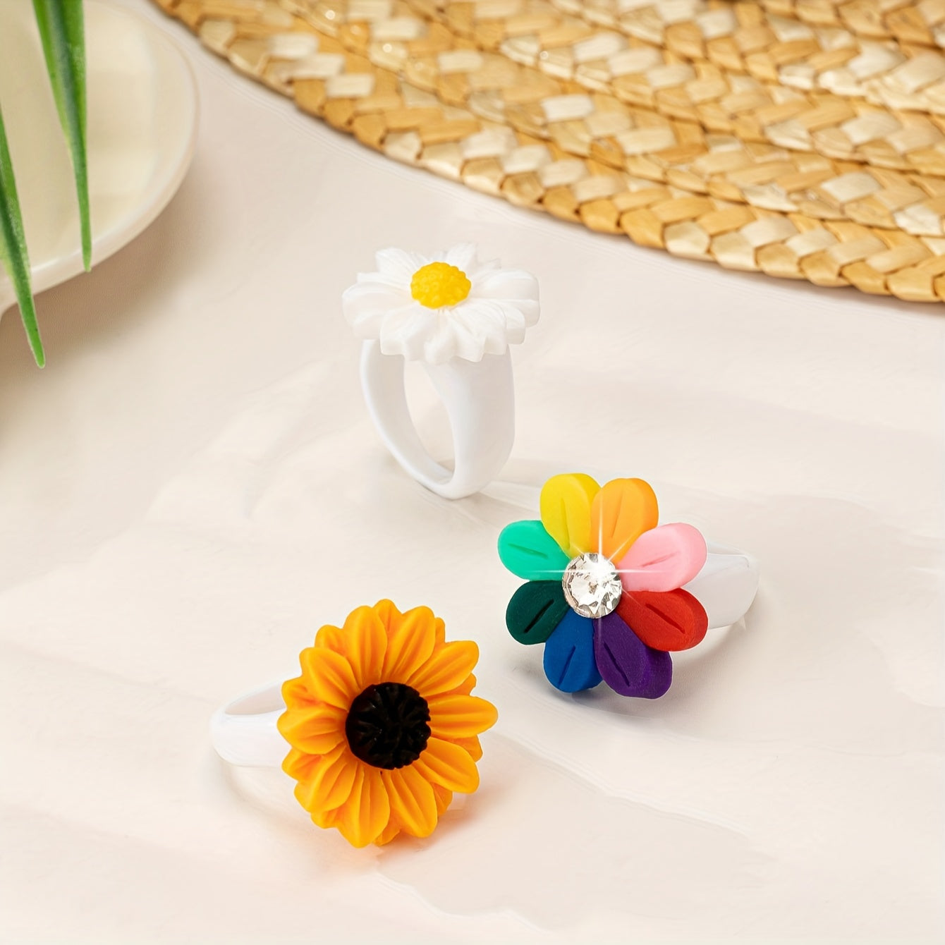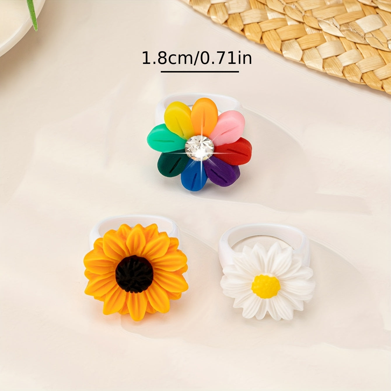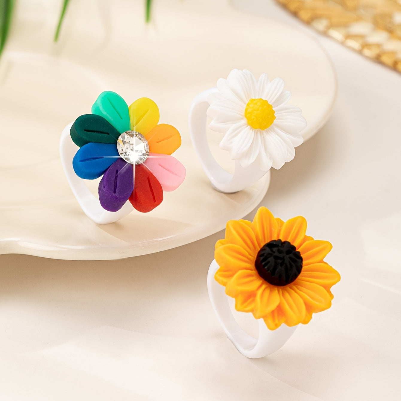3pcs Daisy Flower Ring Set Resin Accessories for Women Perfect for Casual Attire