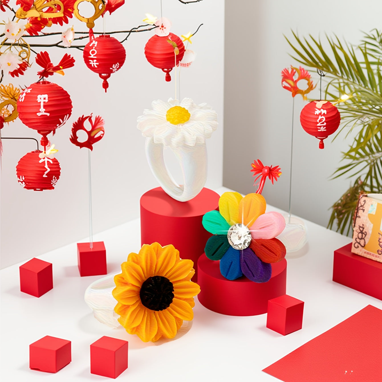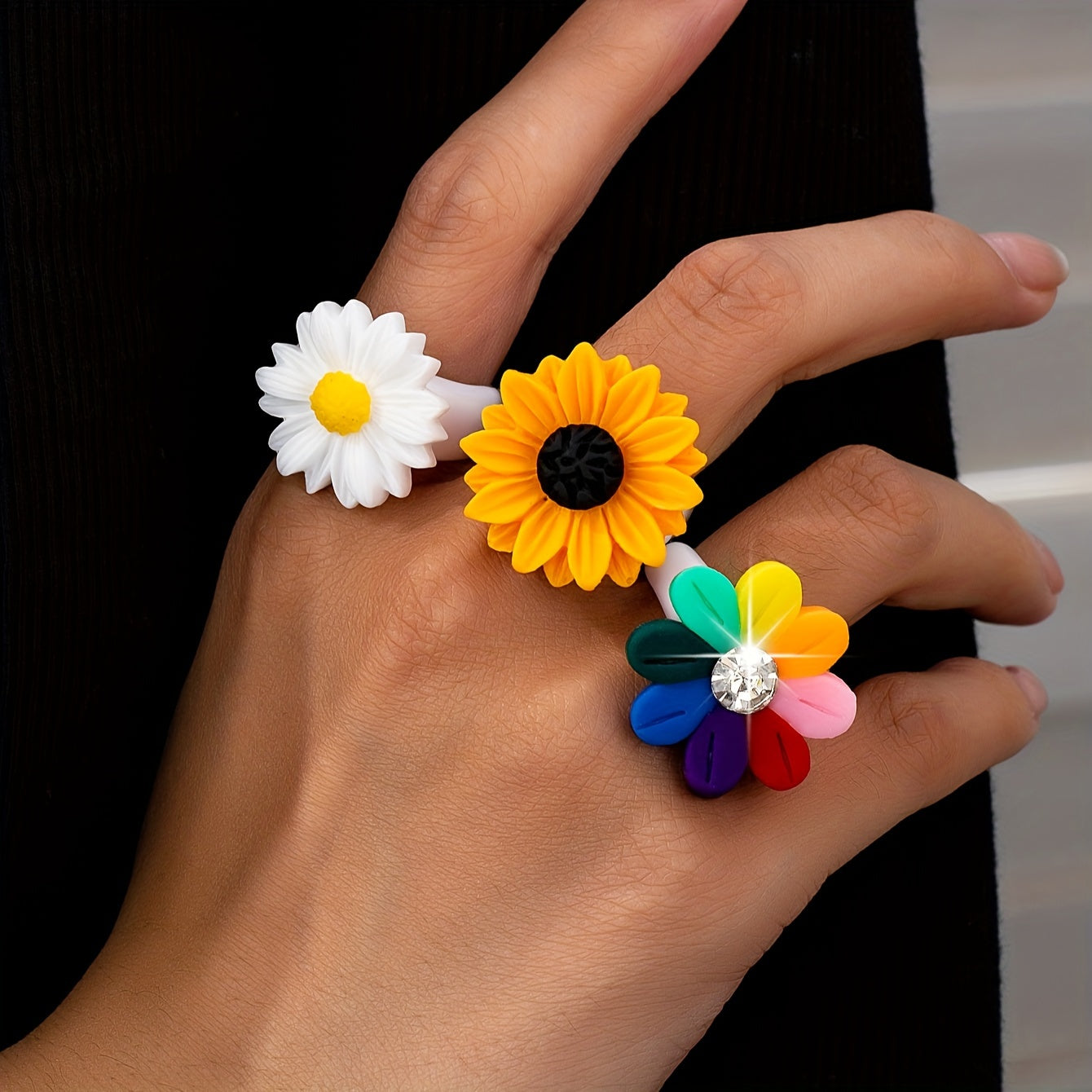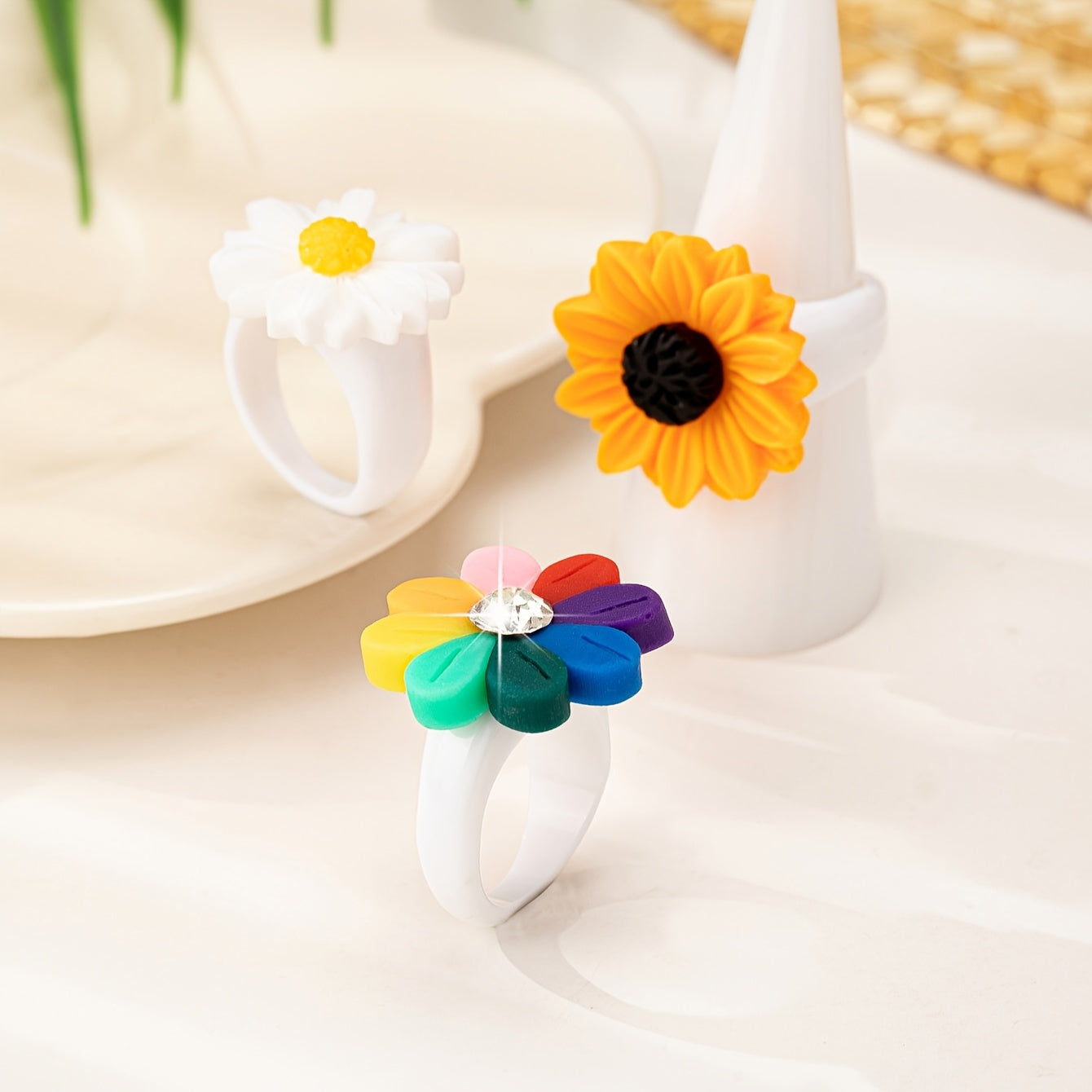 3pcs Daisy Flower Ring Set Resin Accessories for Women Perfect for Casual Attire