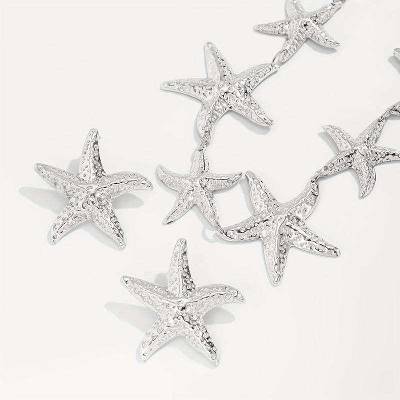 3pcs Geometric Starfish Necklace & Earrings Set Beach Holidays