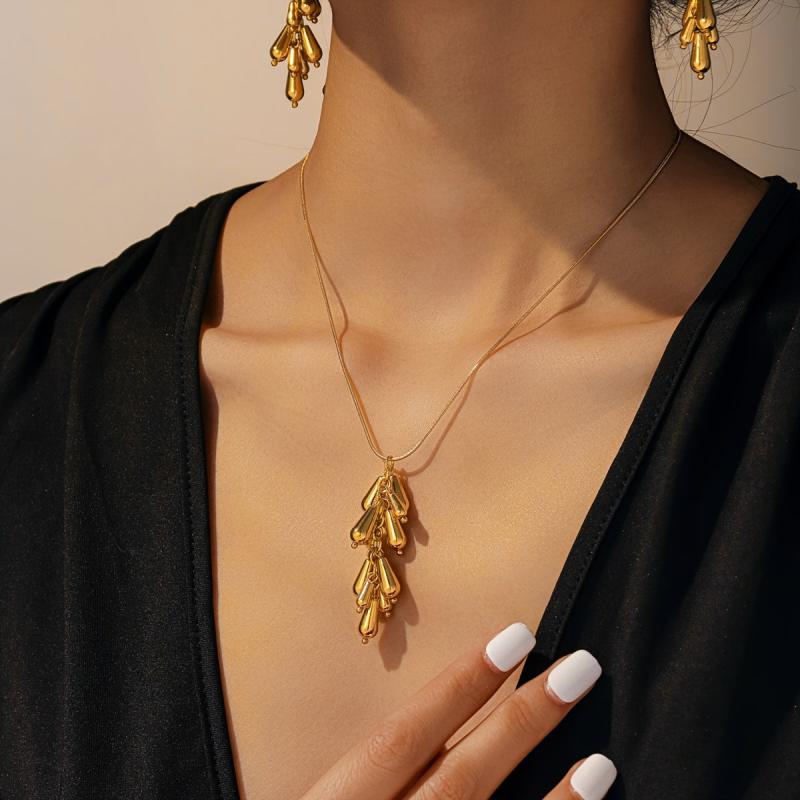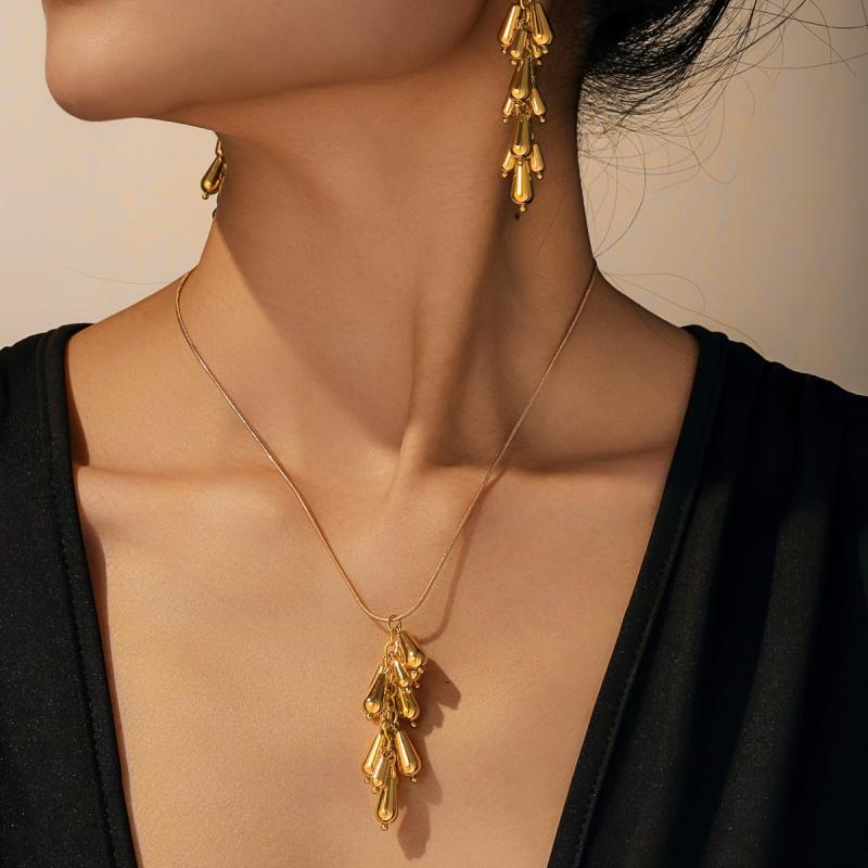 This versatile jewelry set includes a necklace and earrings with water drop bead design. Perfect for daily wear or parties.