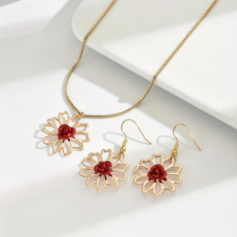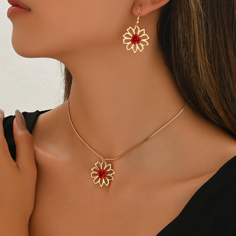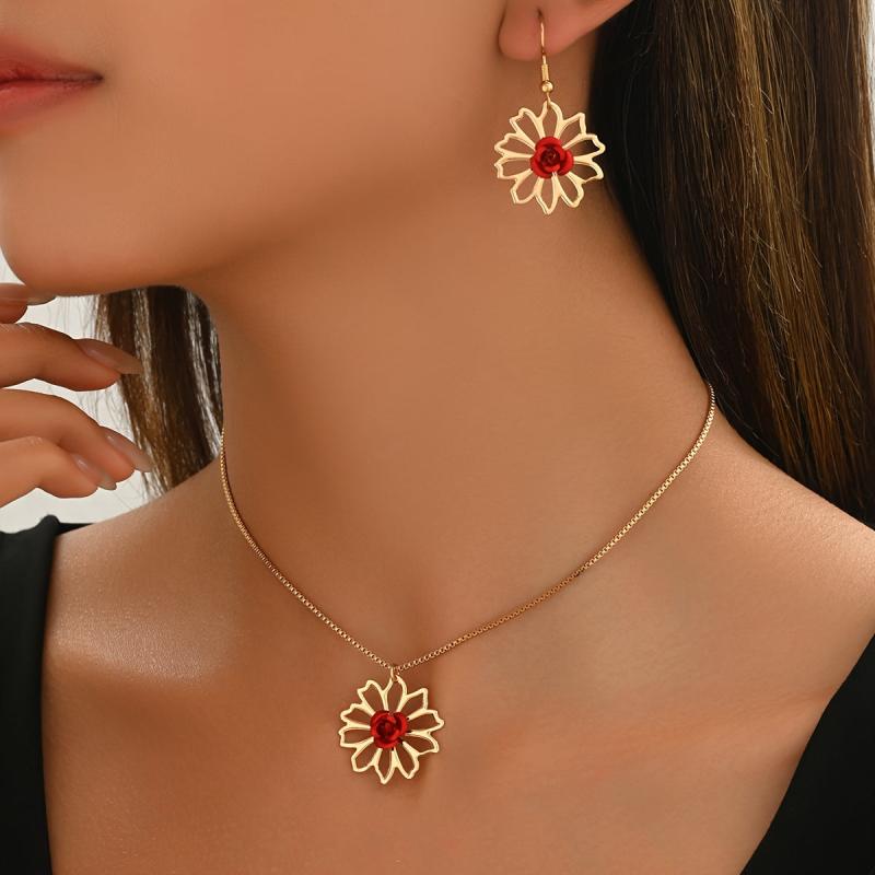 This minimalist jewelry set is perfect for spring and summer. Made from iron, the set includes a necklace and earrings with a hollow design.