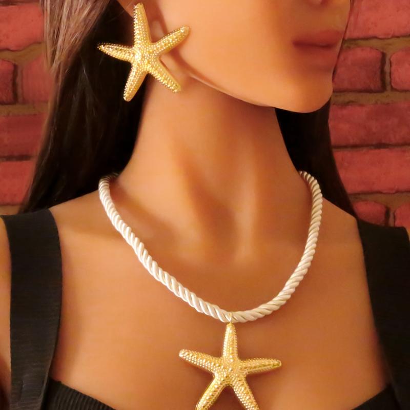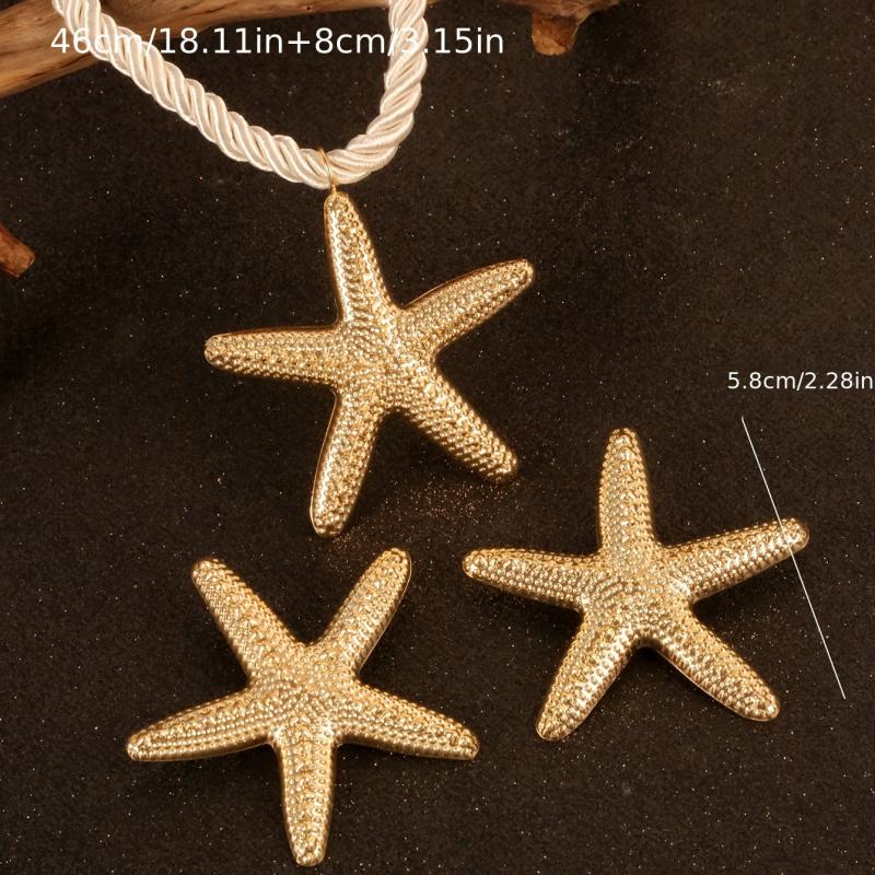 Add a touch of the beach to your outfit with this 3-piece set featuring exaggerated starfish earrings and necklace on a rope. Made of zinc alloy, these accessories are ideal for vacation and daily wear, perfect for beach outings.