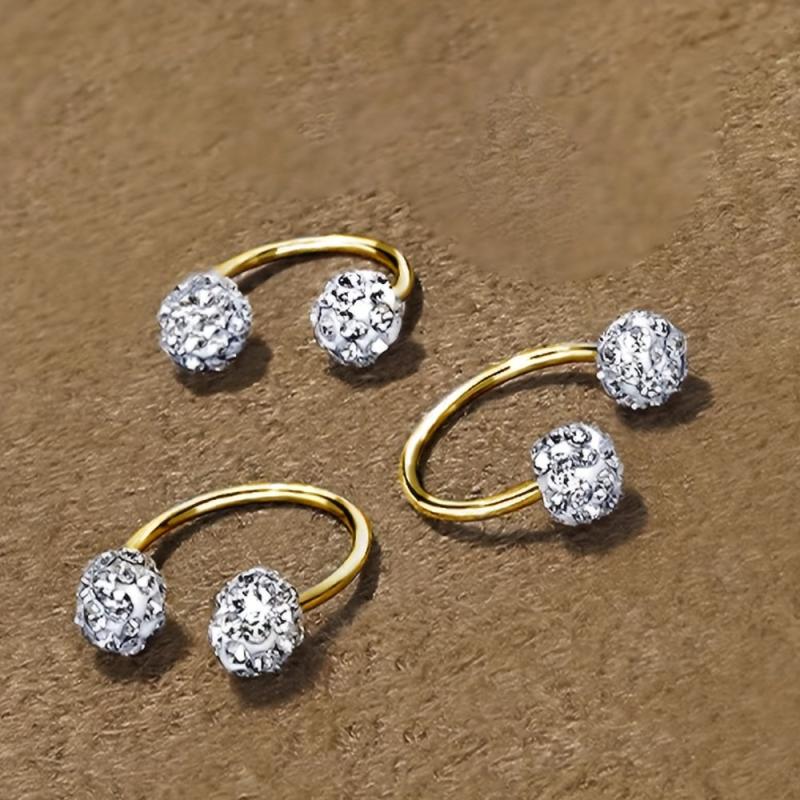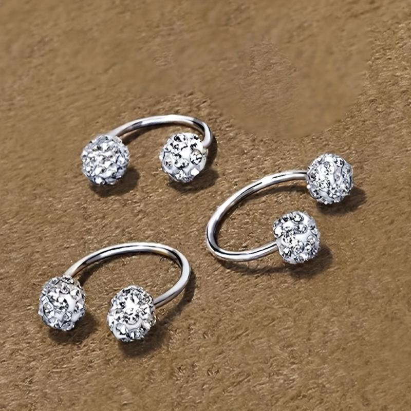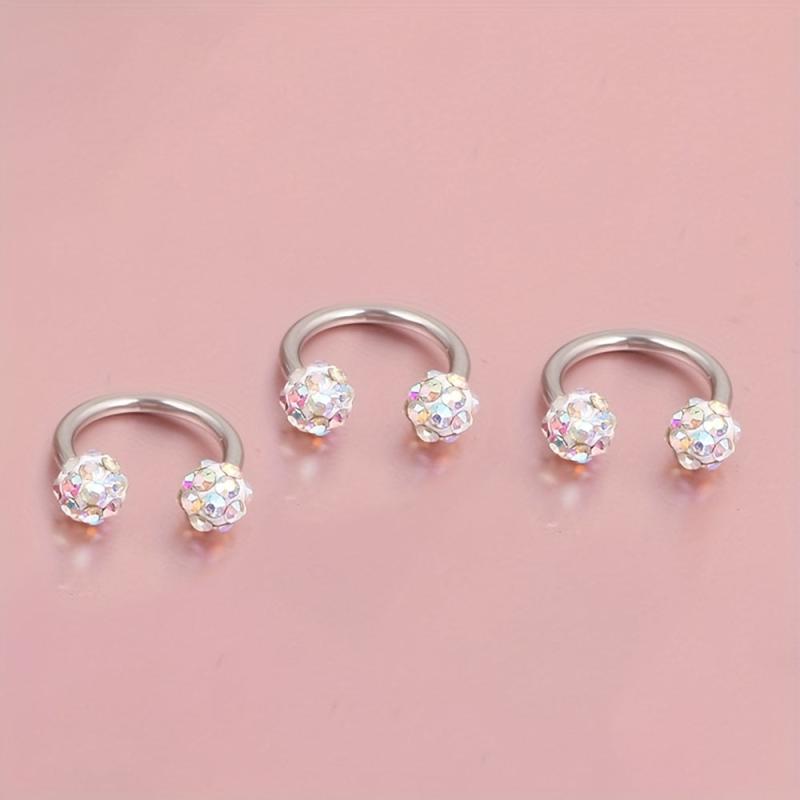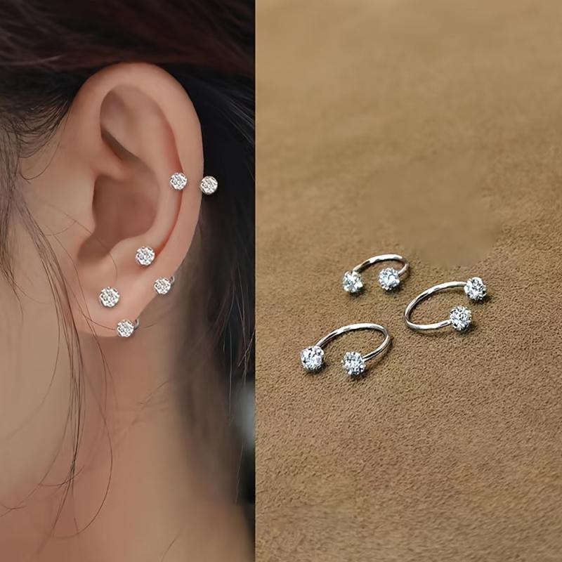 Elevate your style with this fashionable and versatile set of earrings. Made with high-quality stainless steel, these C-shaped earrings feature dazzling drill ball accents and ear bone studs.