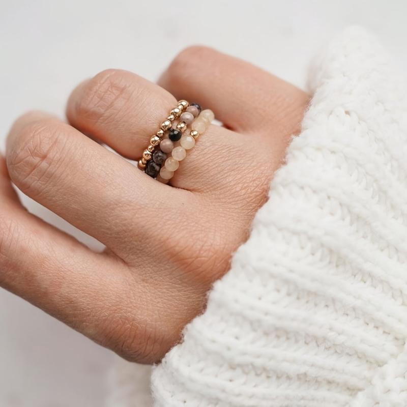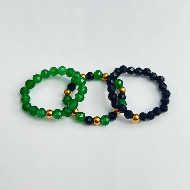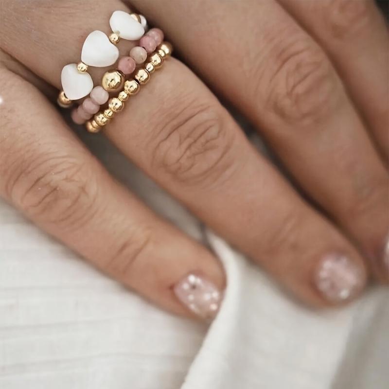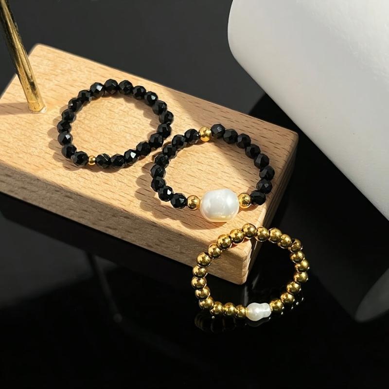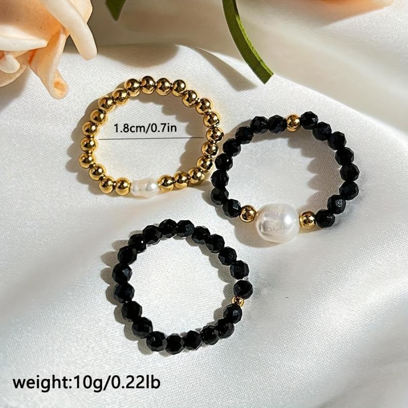 This set of 3 rings is made of stainless steel with natural stone, freshwater pearl, and shell embellishments. It is versatile and suitable for daily wear, travel, and special occasions.