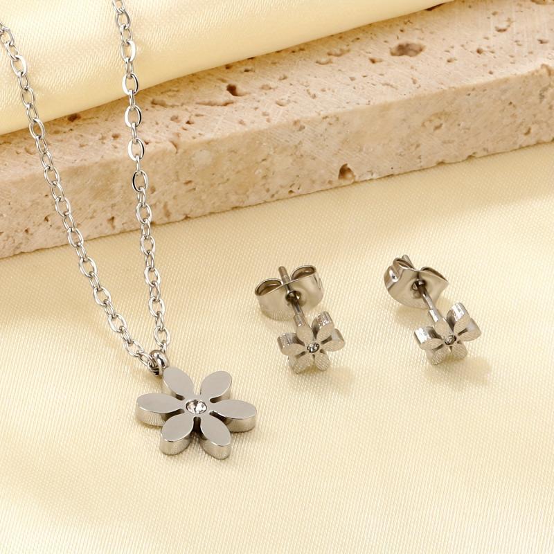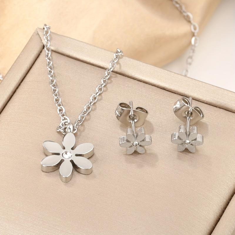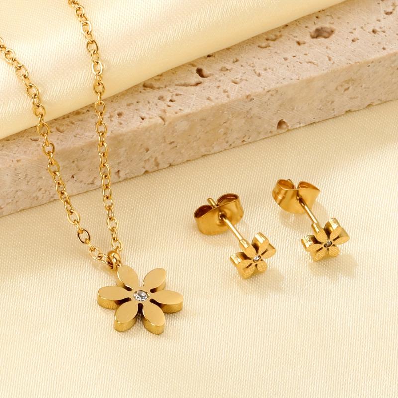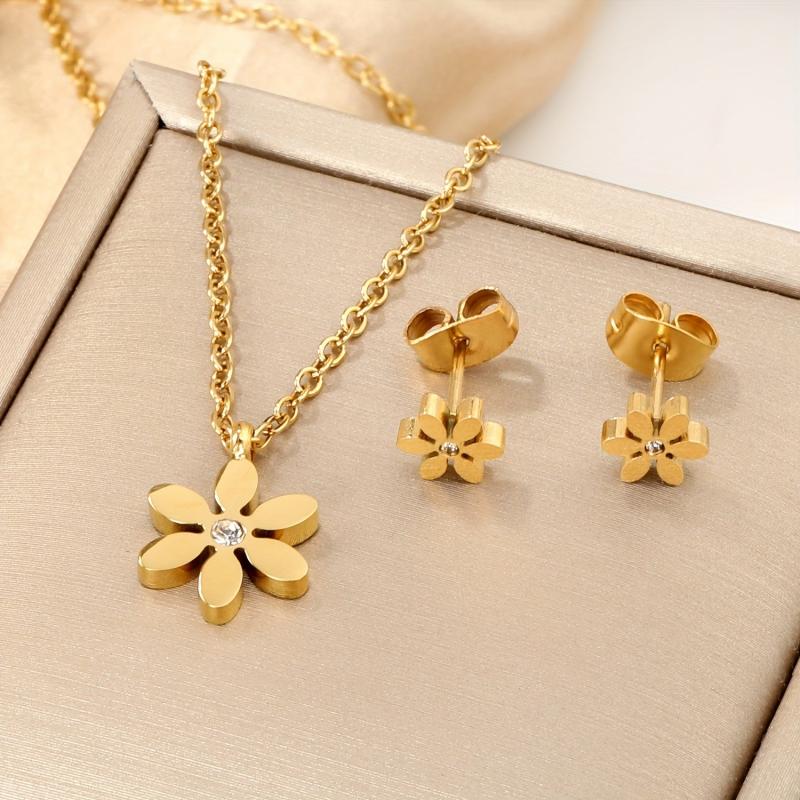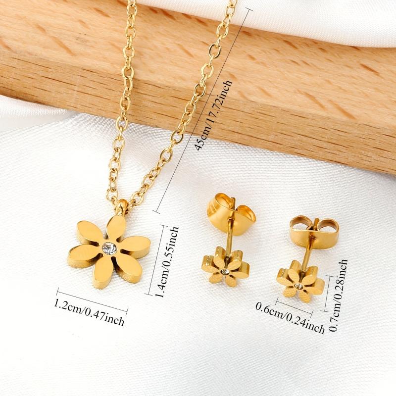 This set includes 3 pairs of women's earrings made from French light 316 stainless steel with 18K gold plating and synthetic stones.