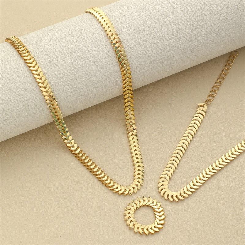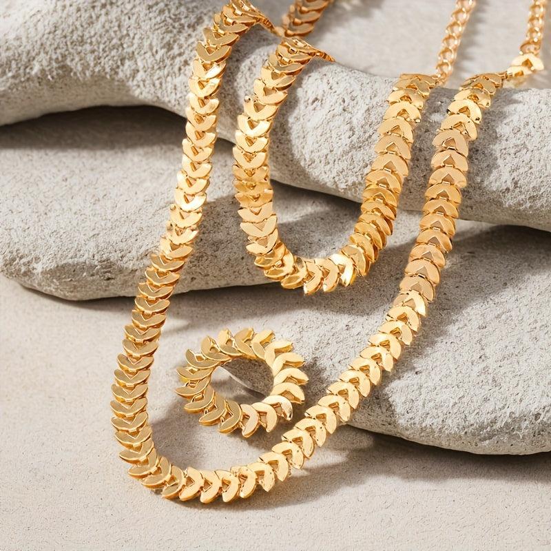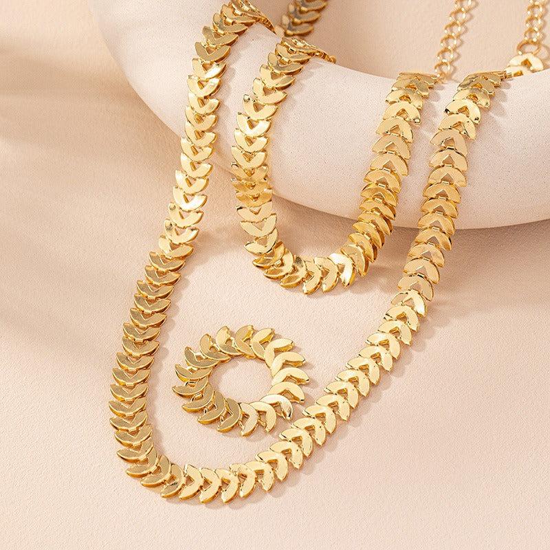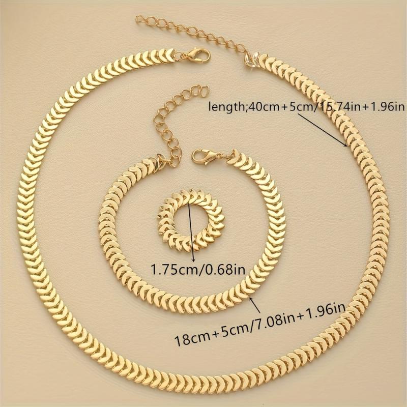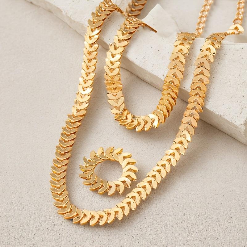 Enhance your outfit with this stylish 3-piece leaf jewelry set featuring a necklace, bracelet, and ring. Perfect for adding a touch of natural elegance to your look.