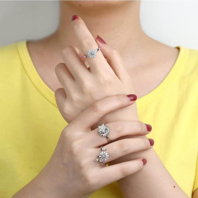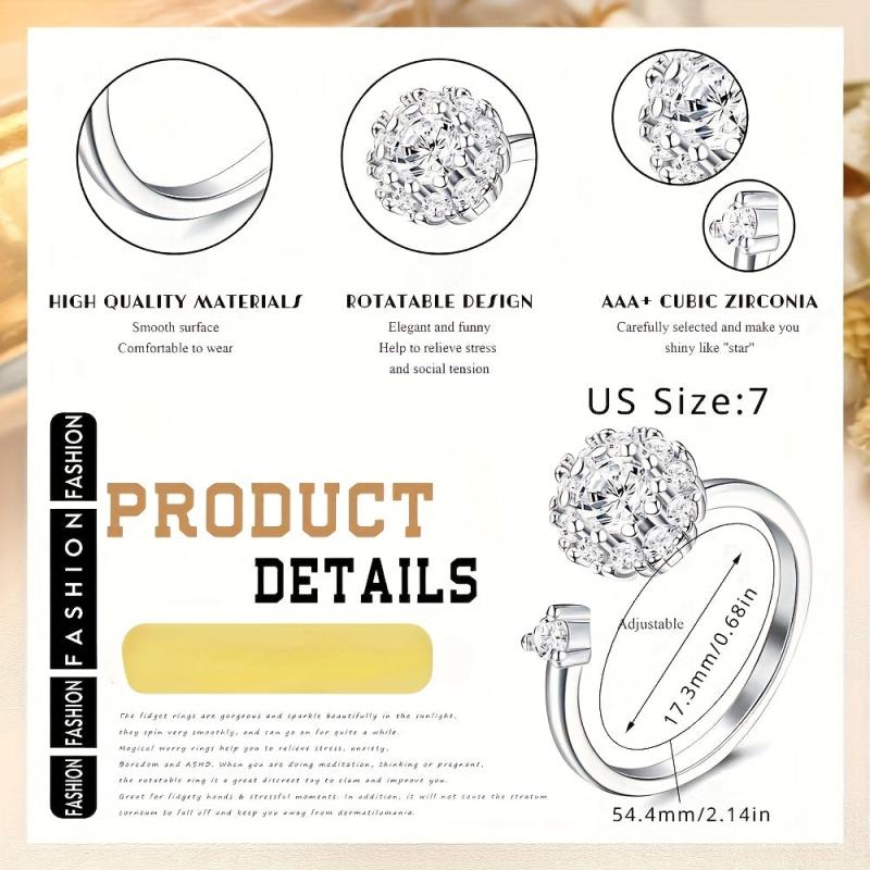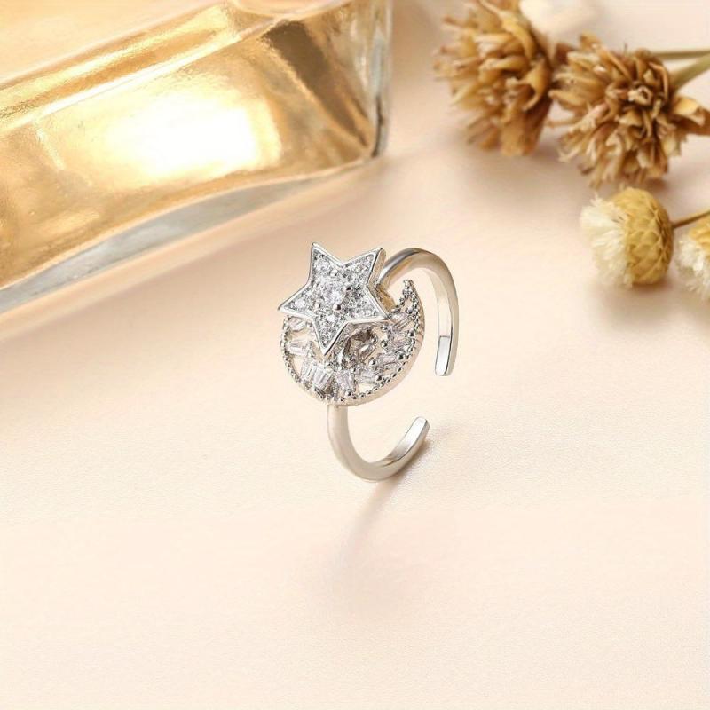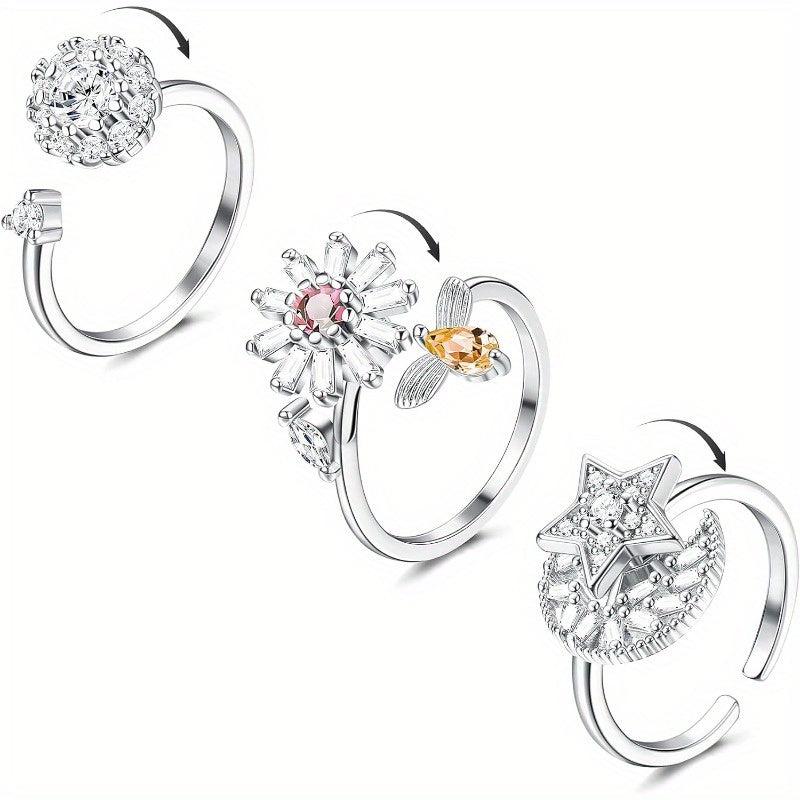 Stay stylish while managing stress with these silver-plated anxiety rings. Each ring features a different design - moon, star, and flower - adorned with cubic zirconia for added sparkle.