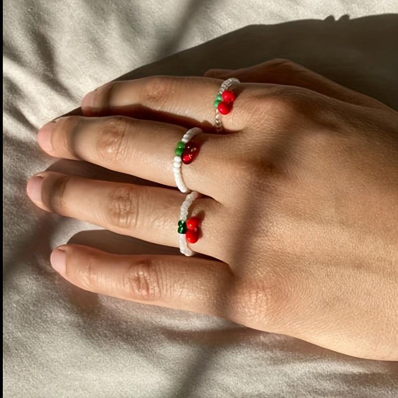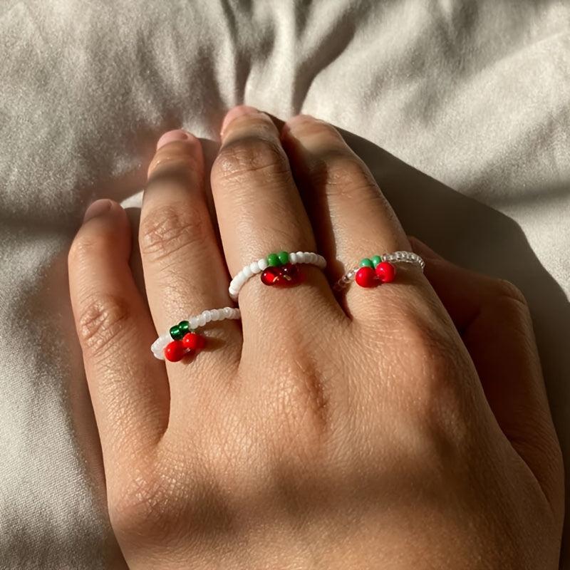 Minimalist cherry bead rice beads ring style, perfect for summer beach and sea wear.