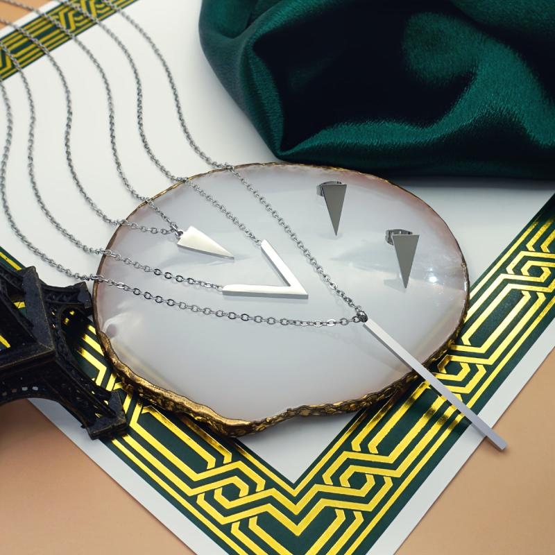 Elevate your style with this fashionable necklace and earrings set. Made of stainless steel, it features a long V shaped geometric pendant with double circles. Perfect for birthdays, Christmas, or any special occasion.