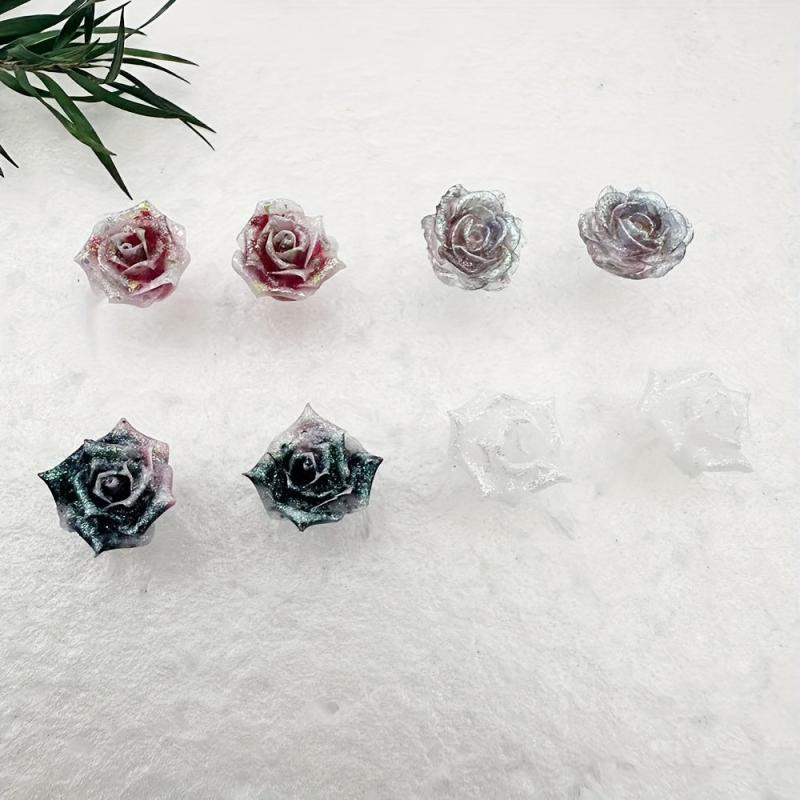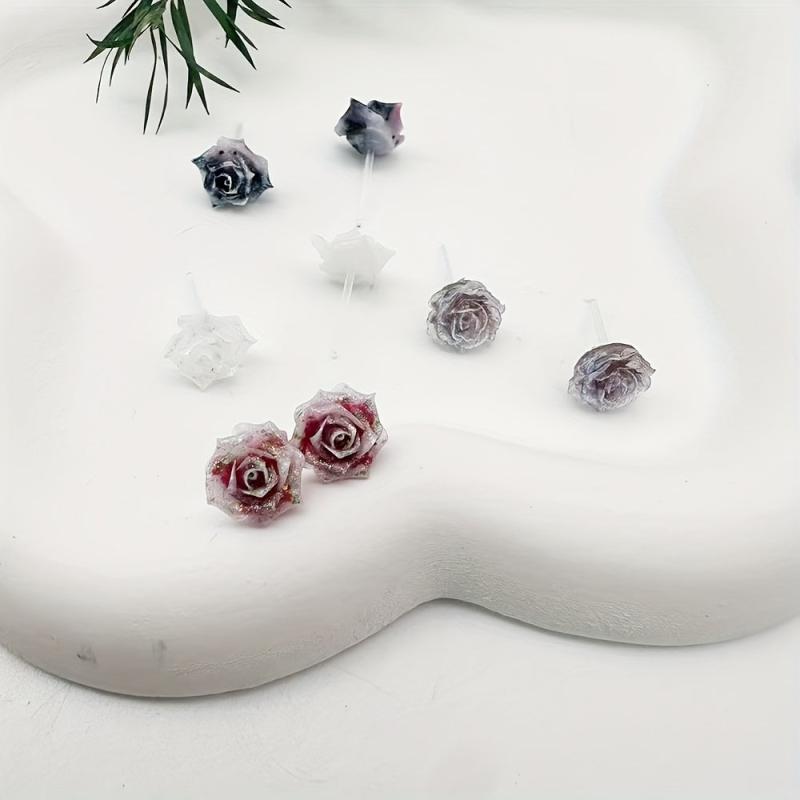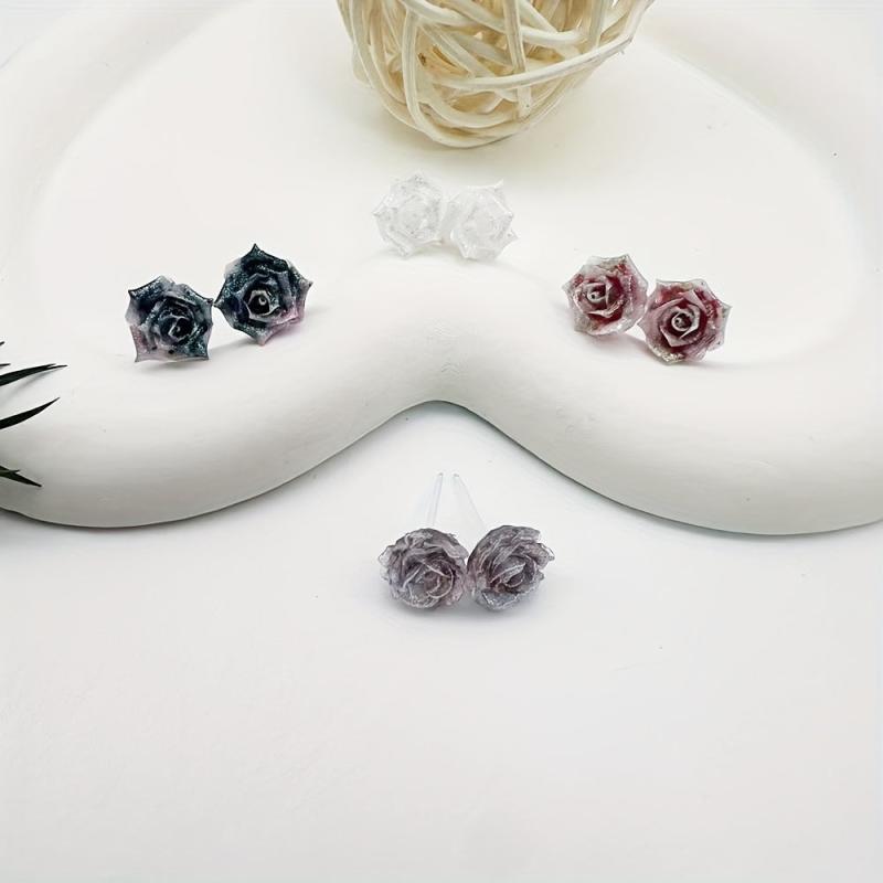 Elevate your look with this high-end set of retro style glitter ombre flower earrings. The soft rubber design provides comfort and versatility.