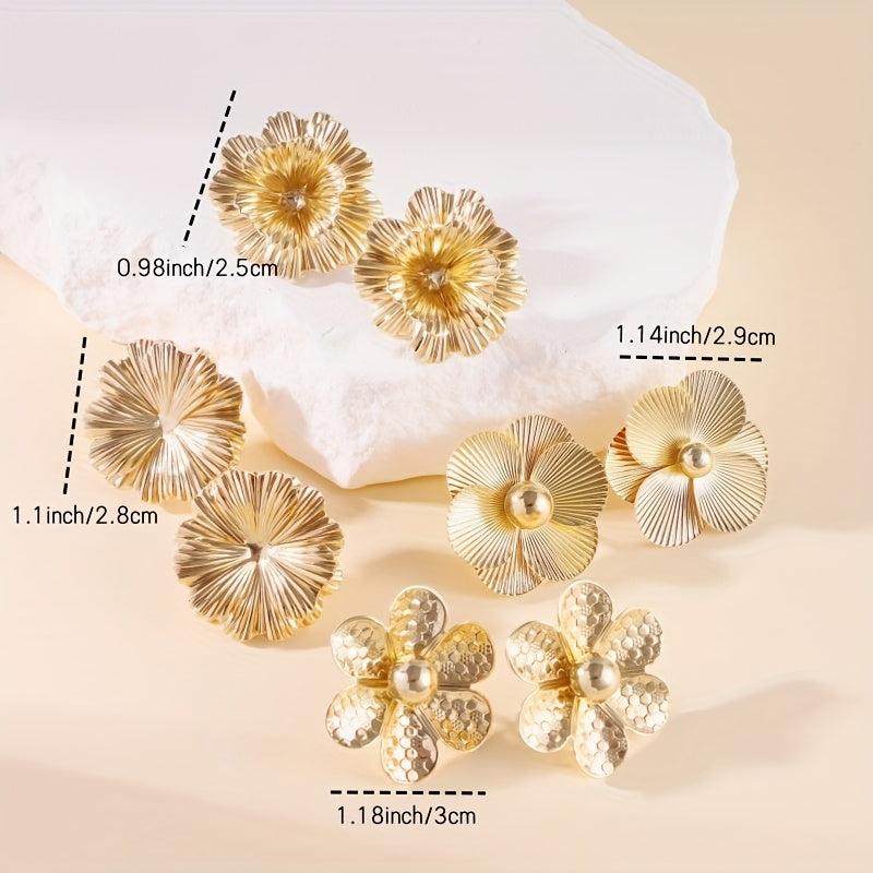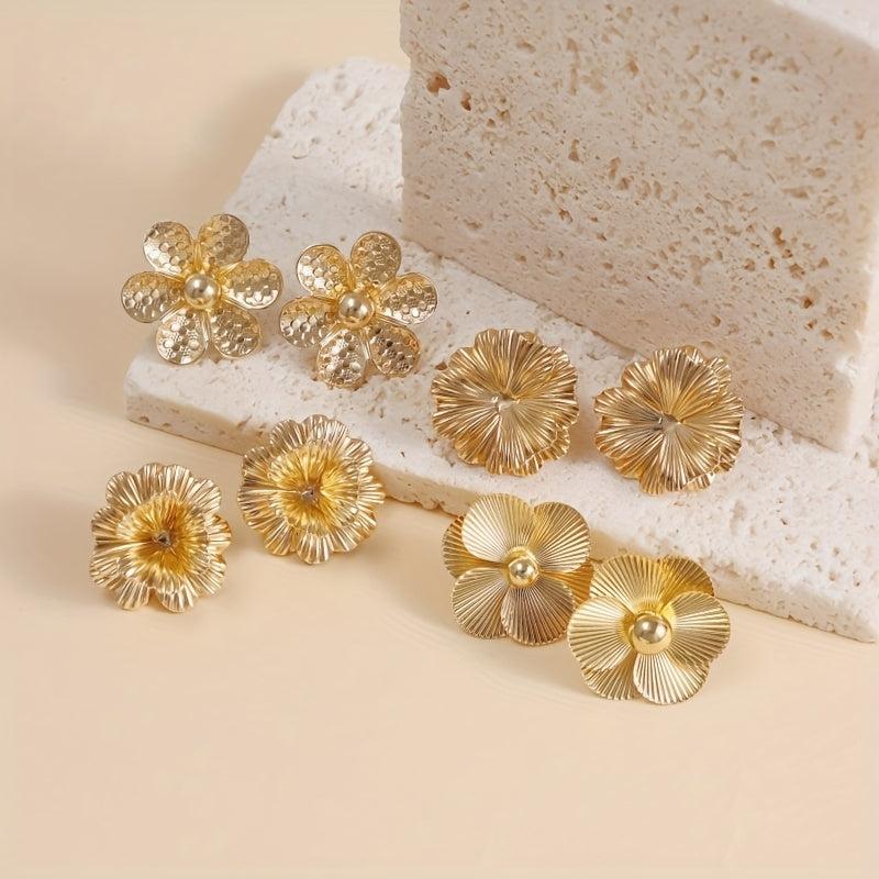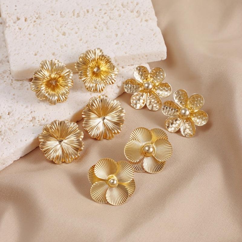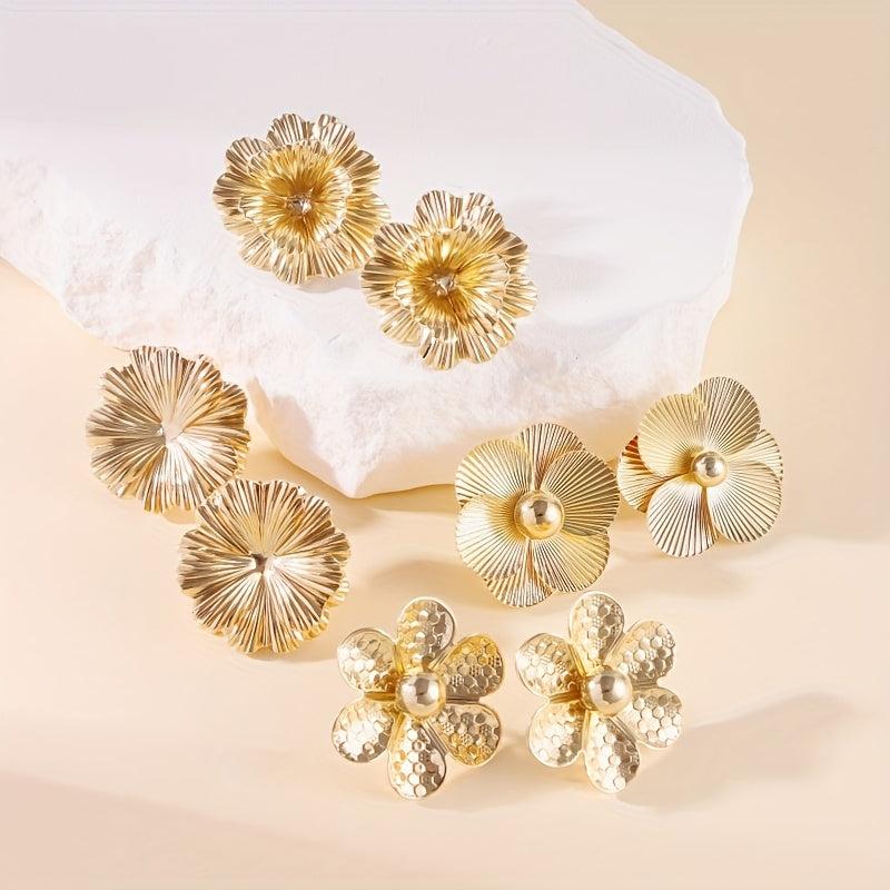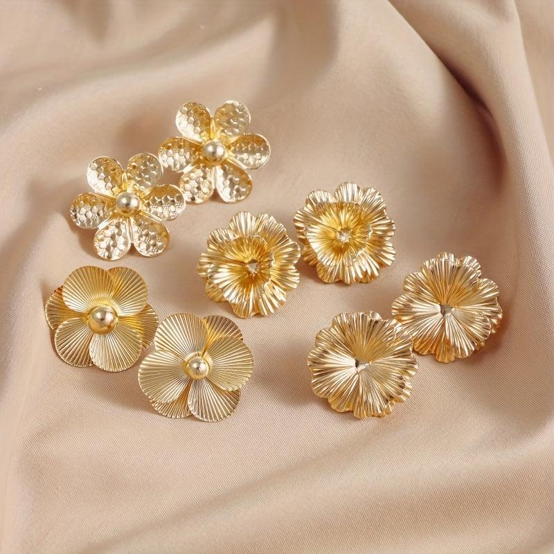 These exaggerated, personalized earrings are perfect for adding a retro touch to your outfit. Made of foreign trade gold metal, they feature unique flower designs that will make a statement.