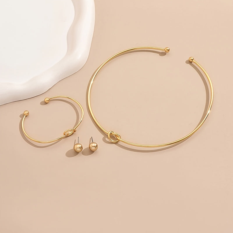 Add a touch of glamour to your outfit with this 4-piece jewelry set featuring exaggerated geometric open hoop earrings, bracelet, and necklace for women.