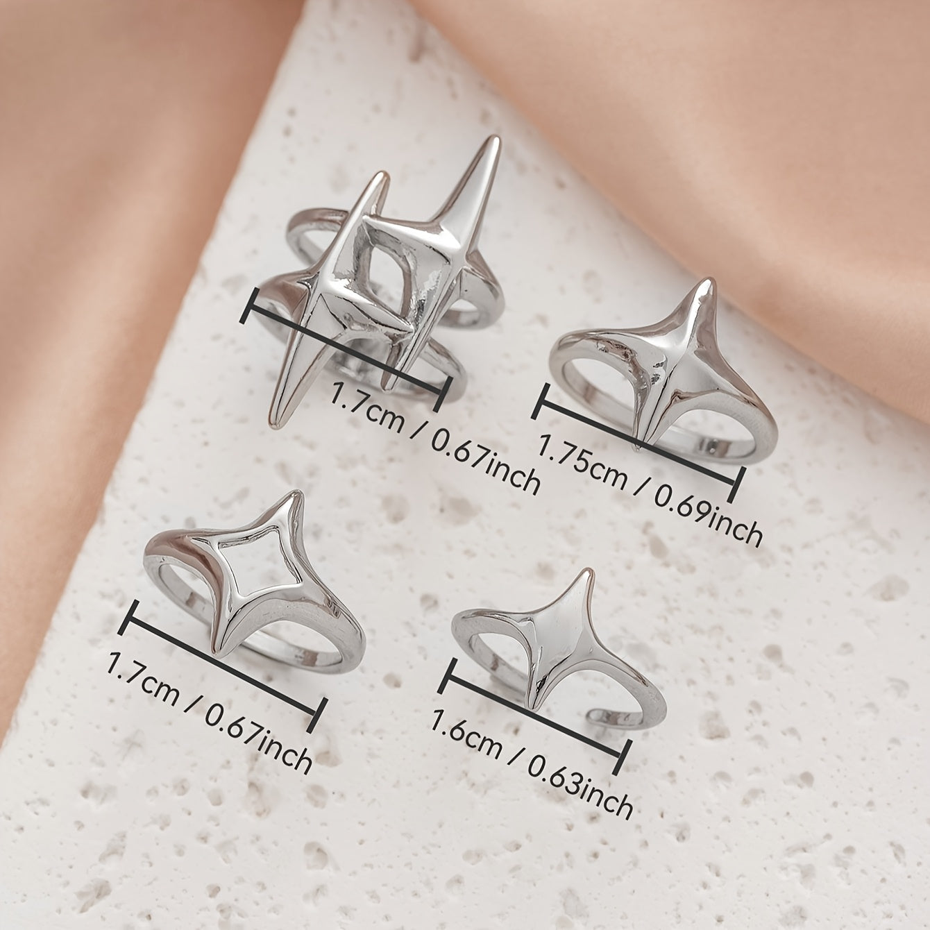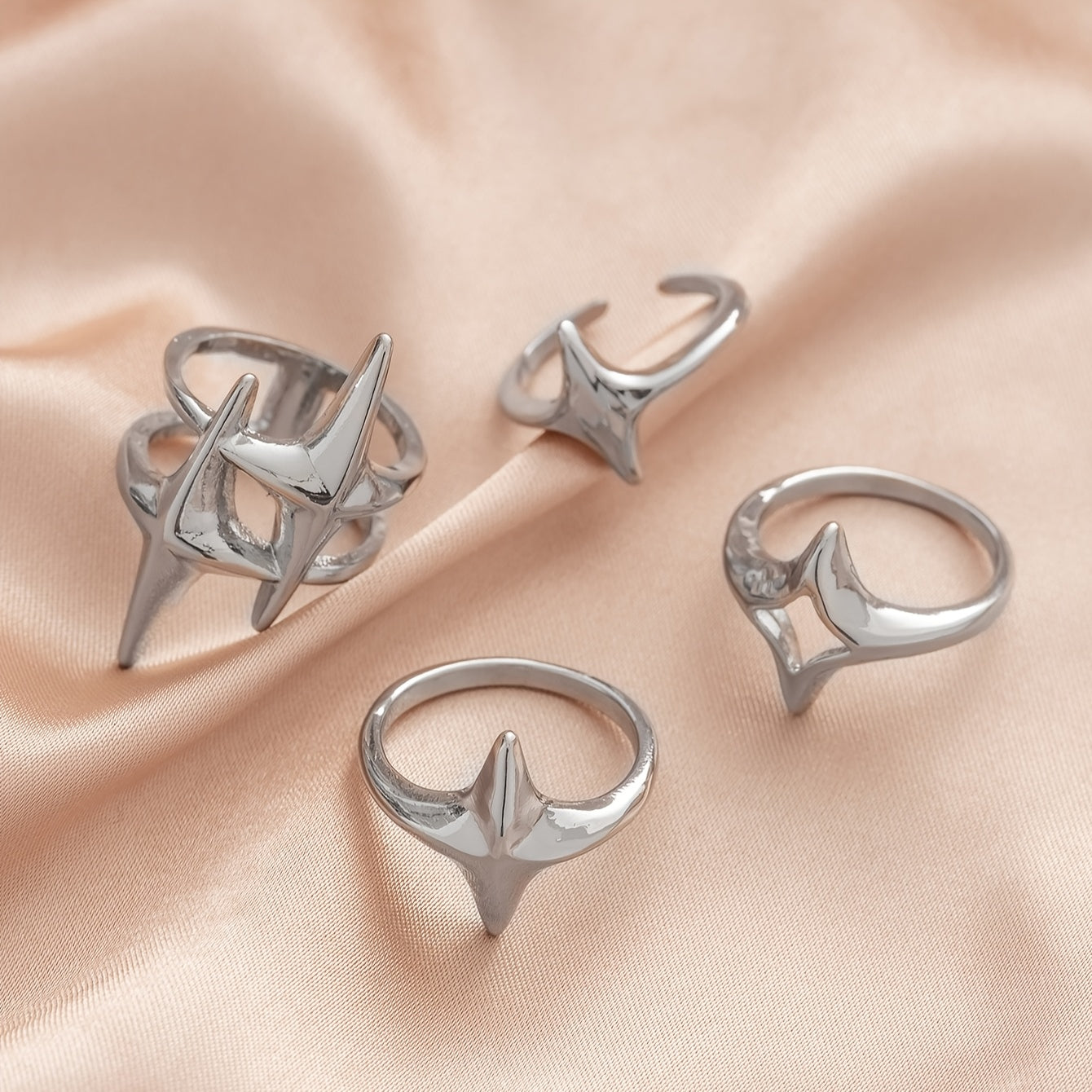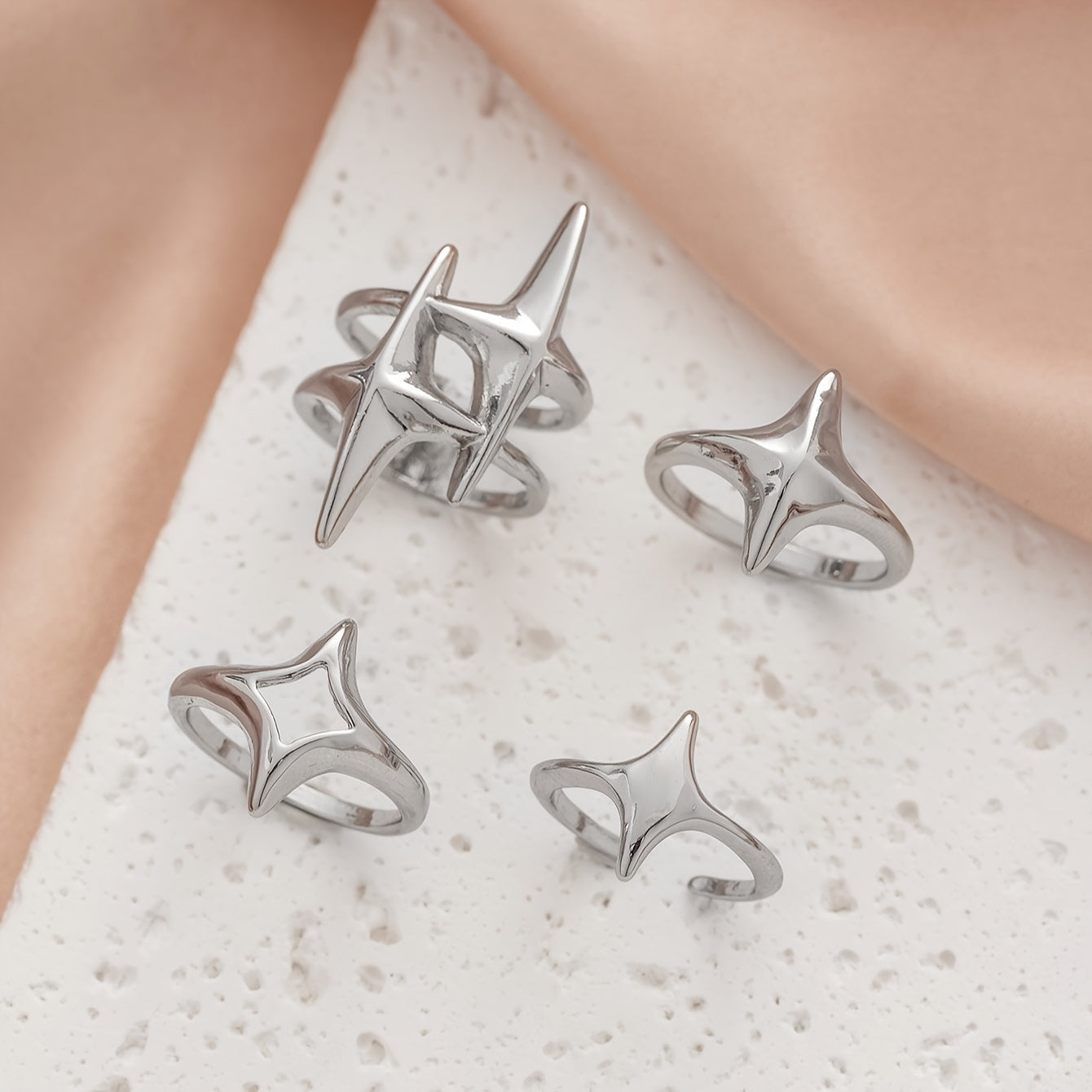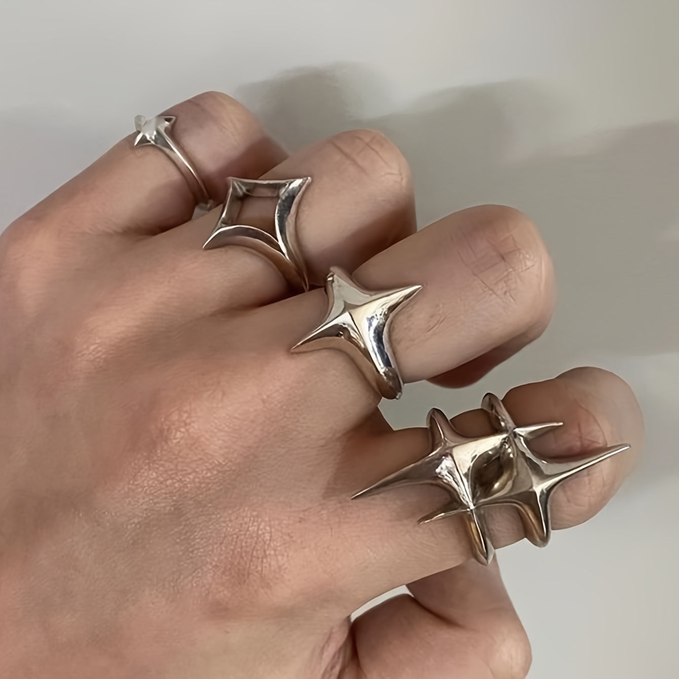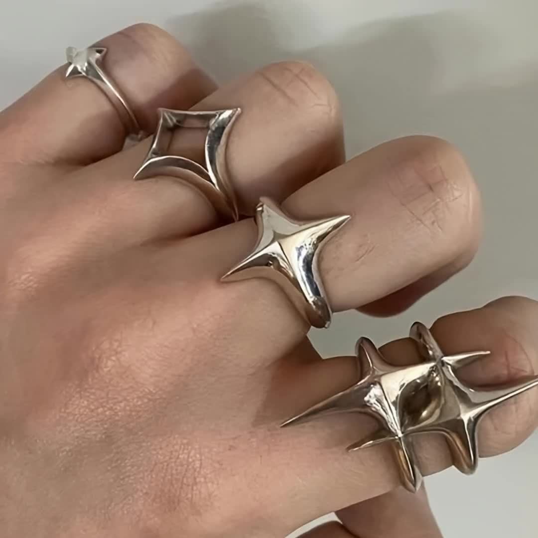 Make a statement with these hip hop style exaggerated four pointed star ring set. Perfect for music party or holiday events. These rings are great jewelry accessories to elevate your look.