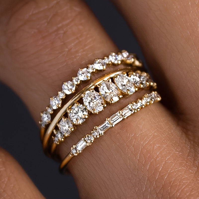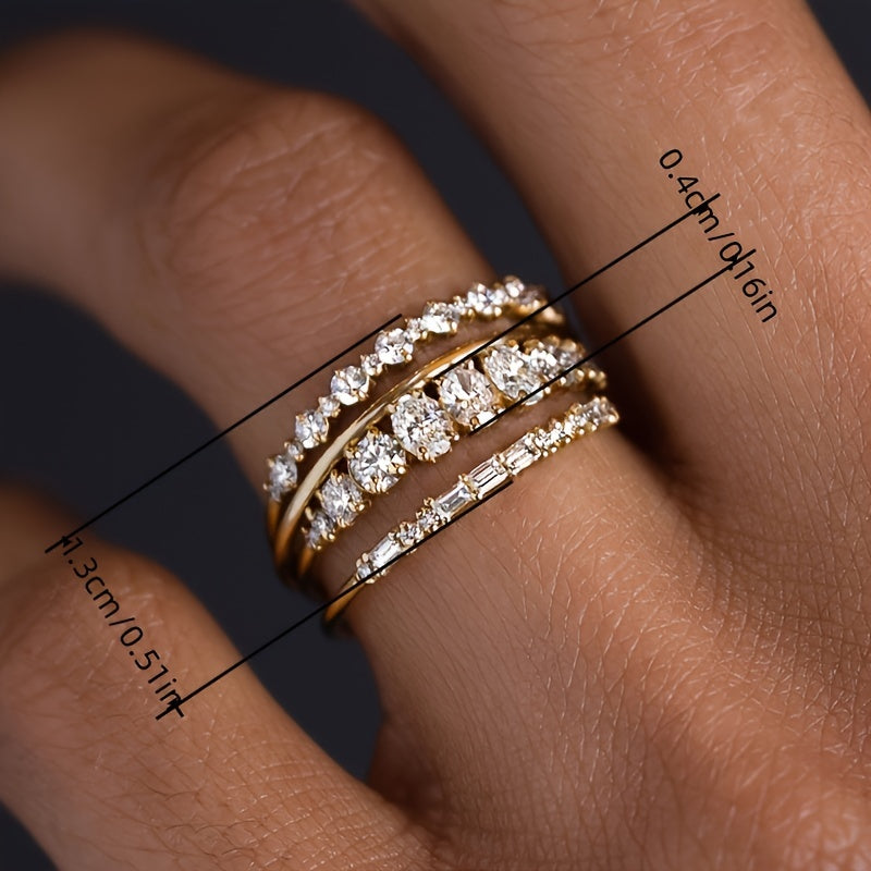 This set of 4 rings features synthetic cubic zirconia inlay and is made of high-quality copper. Perfect for weddings, daily wear, casual outings, and vacations.