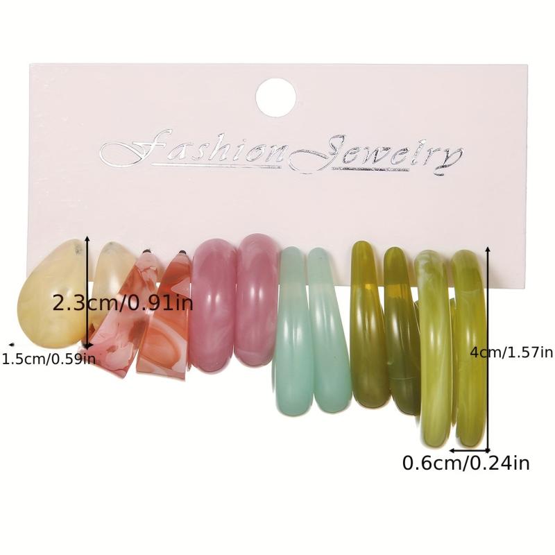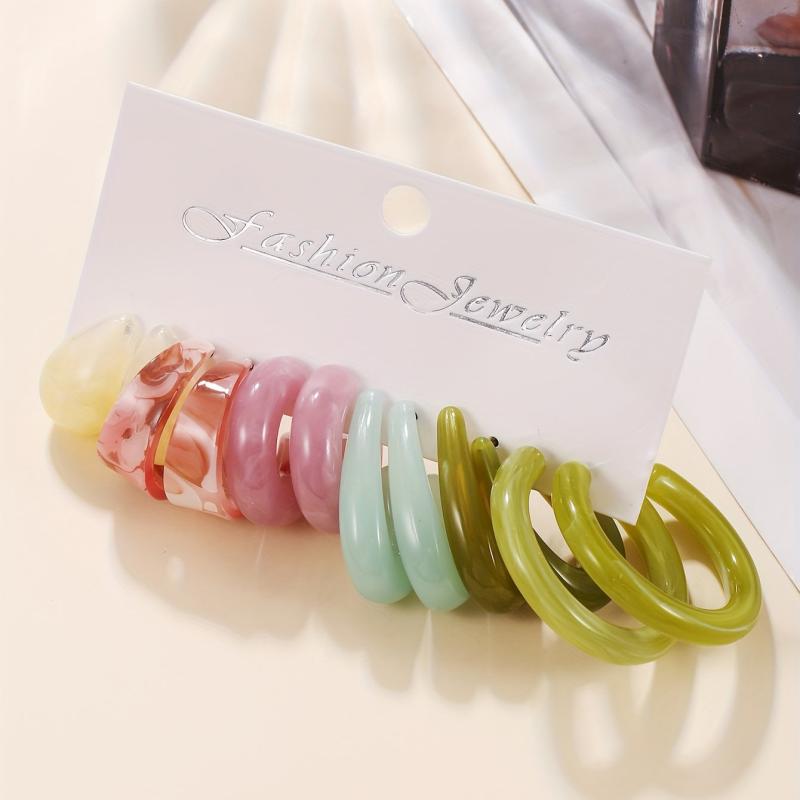 This set includes 5 pairs of acrylic C earrings, perfect for adding a touch of style to your outfits. These stud earrings are versatile and can be worn with a variety of looks.