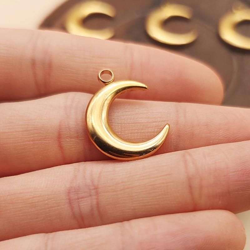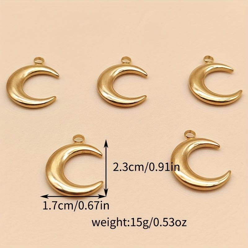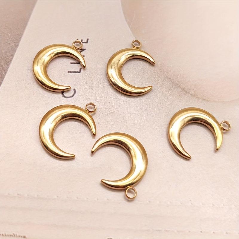 Elevate your DIY jewelry projects with this set of 5 stainless steel moon pendants. Create unique accessories that showcase your style and creativity.