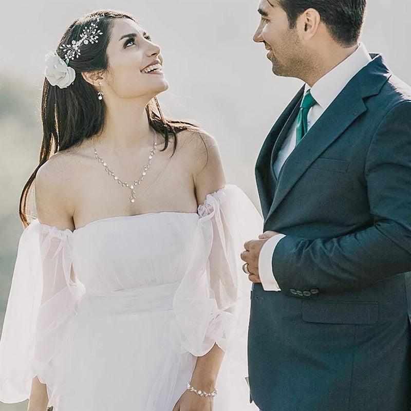 • Includes necklace, earrings, bracelet, and hair pins