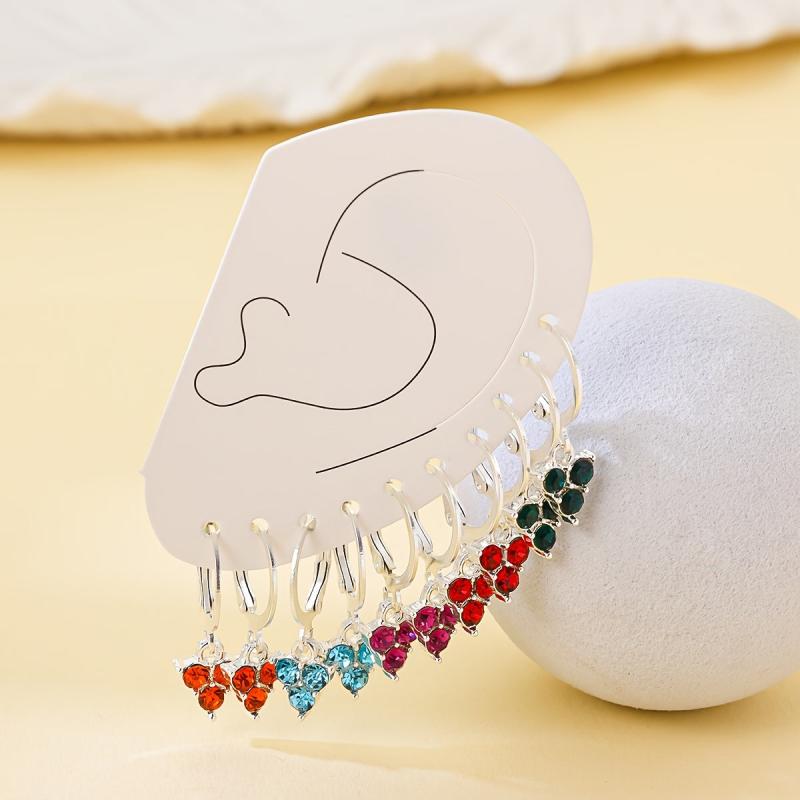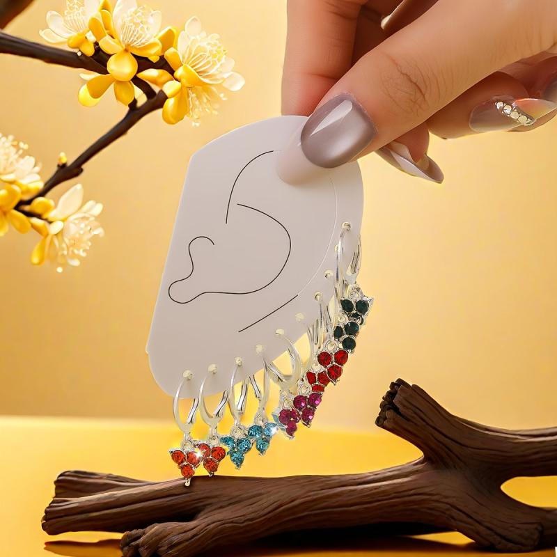 This stylish earring set features 5 pieces of silvery plated earrings with rhinestone pendants that are suitable for all seasons. It makes an ideal gift for ladies and comes in a beautiful Red Lake Rose Golden color.