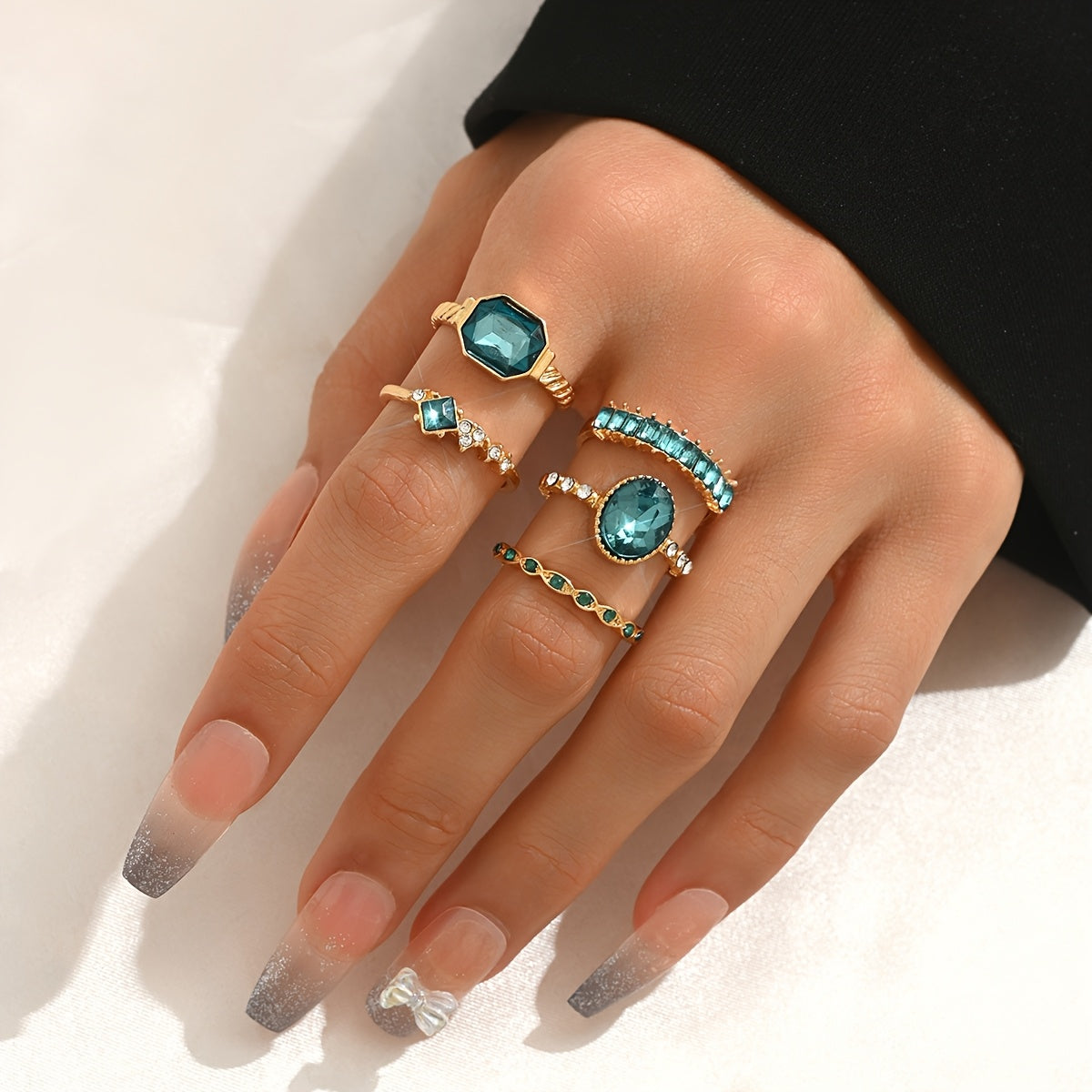 Add a touch of elegance to your daily wear with this set of 5 rings featuring purple gemstones and rhinestone accents. Made from golden-toned alloy, these decorative rings are perfect for accessorizing any outfit.