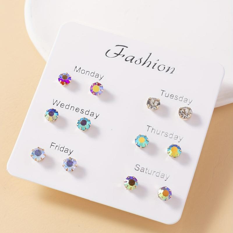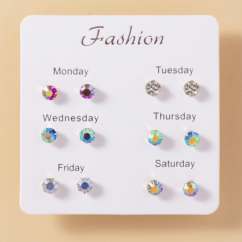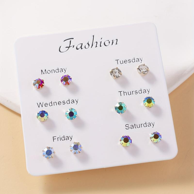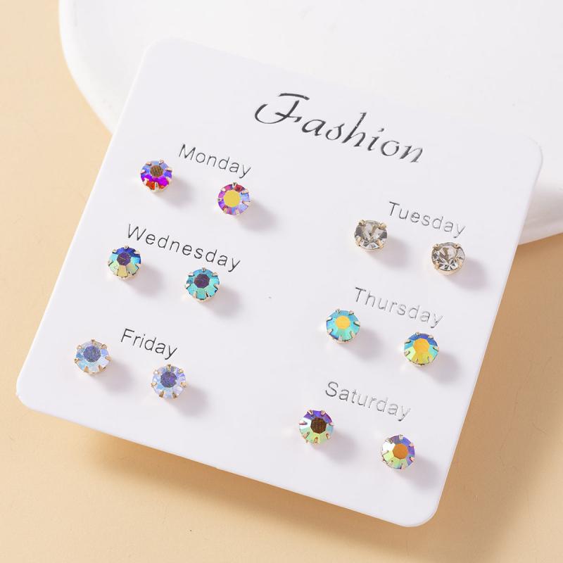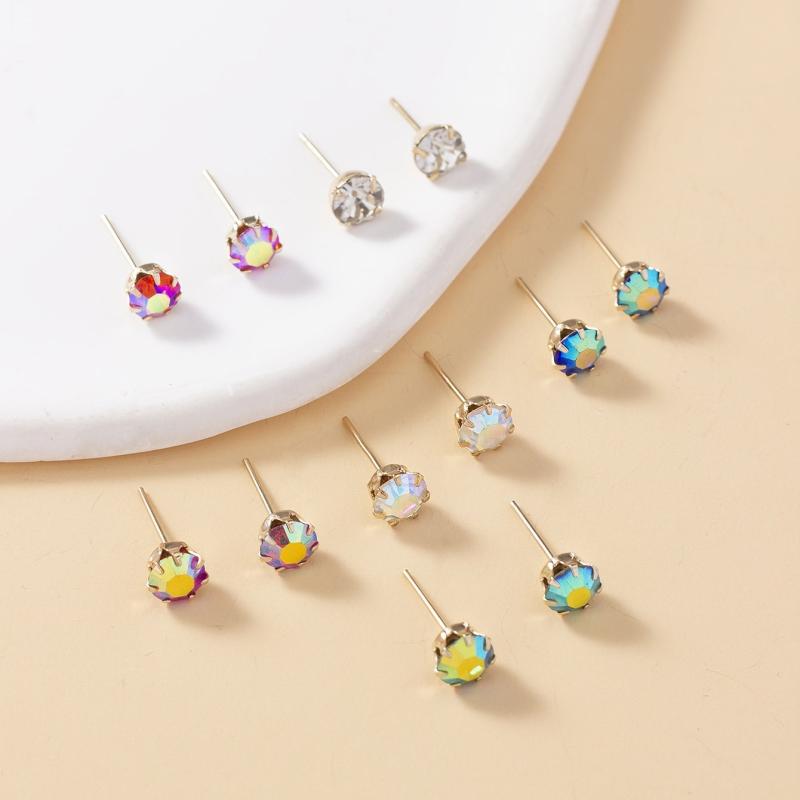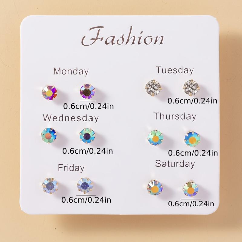 6 Pairs Colorful Rhinestone Stud Earrings Set - Sexy Style Female Gift