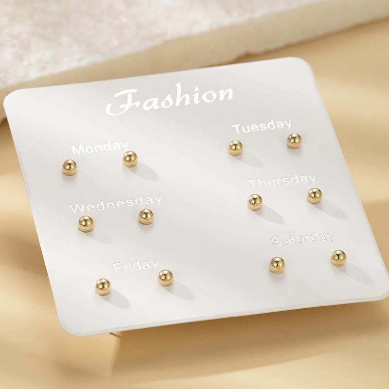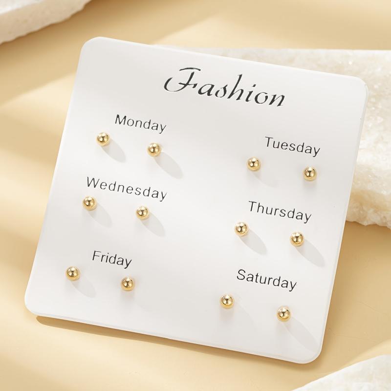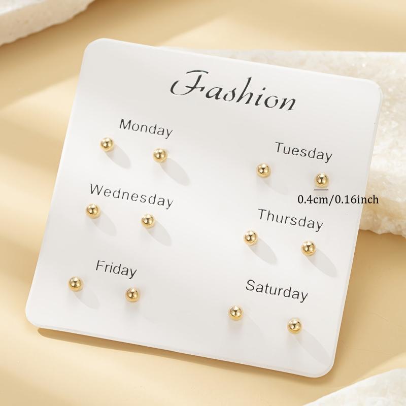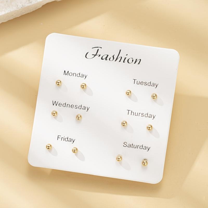 Elevate your style with this set of 6 pairs of fashionable round earrings that are perfect for holidays or daily wear. The combination of metal and resin gives these earrings a unique and versatile look.