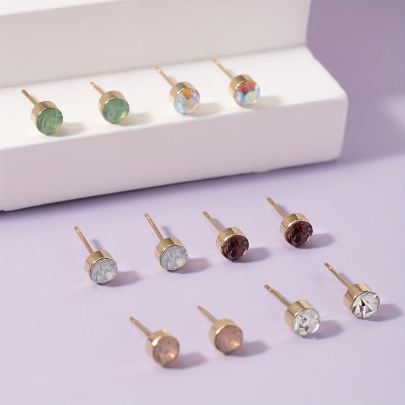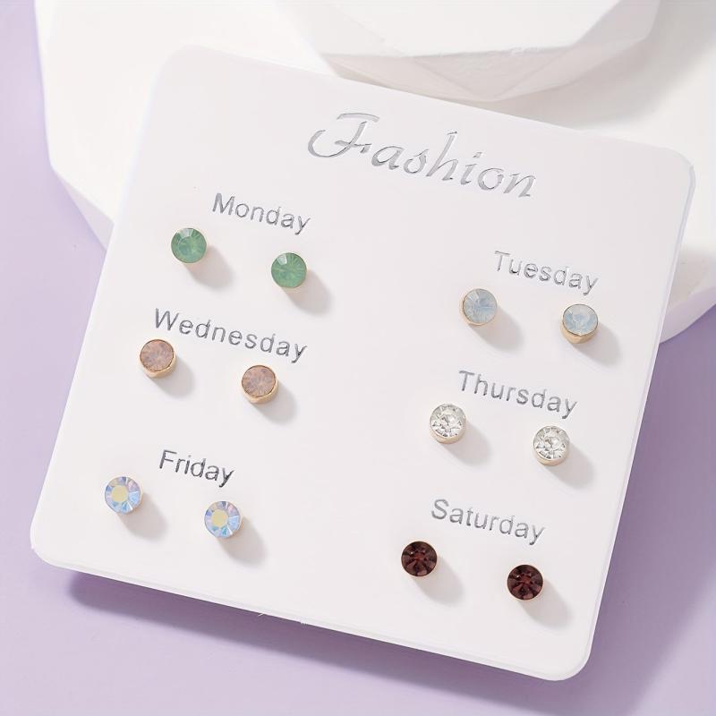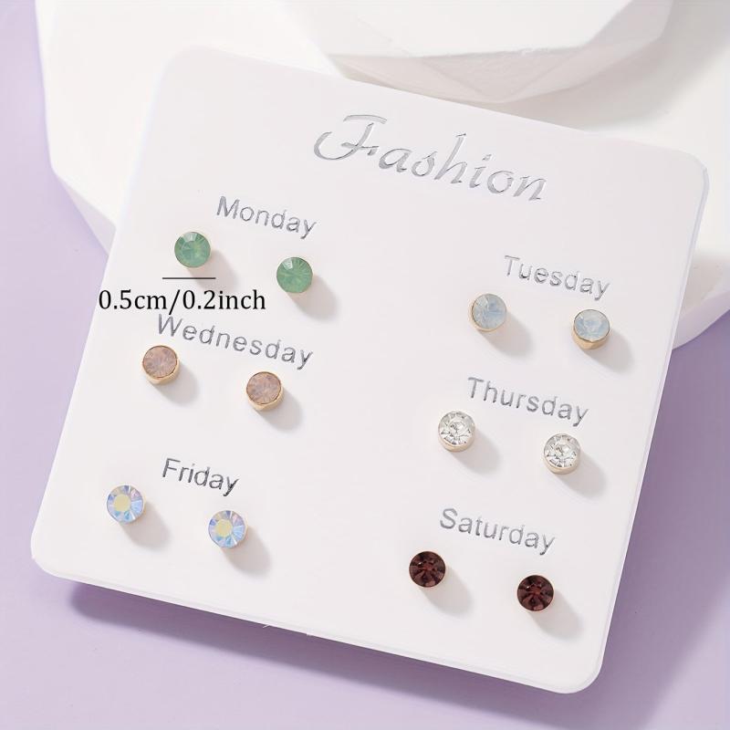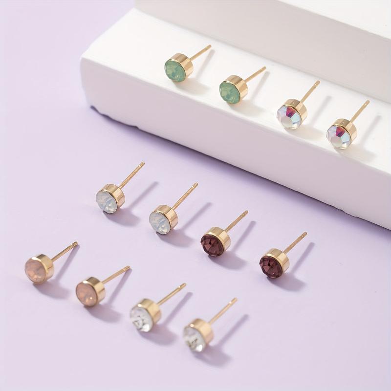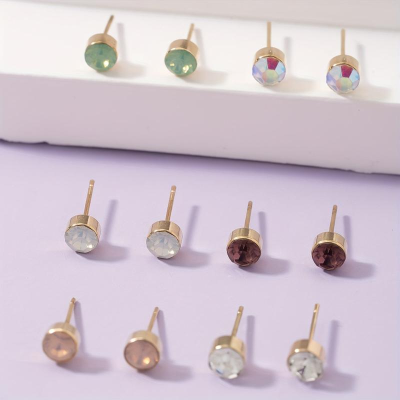 Get ready for the festive season with this set of 6 pairs of metal rhinestone earrings in various colors. Perfect for daily wear or special occasions.
