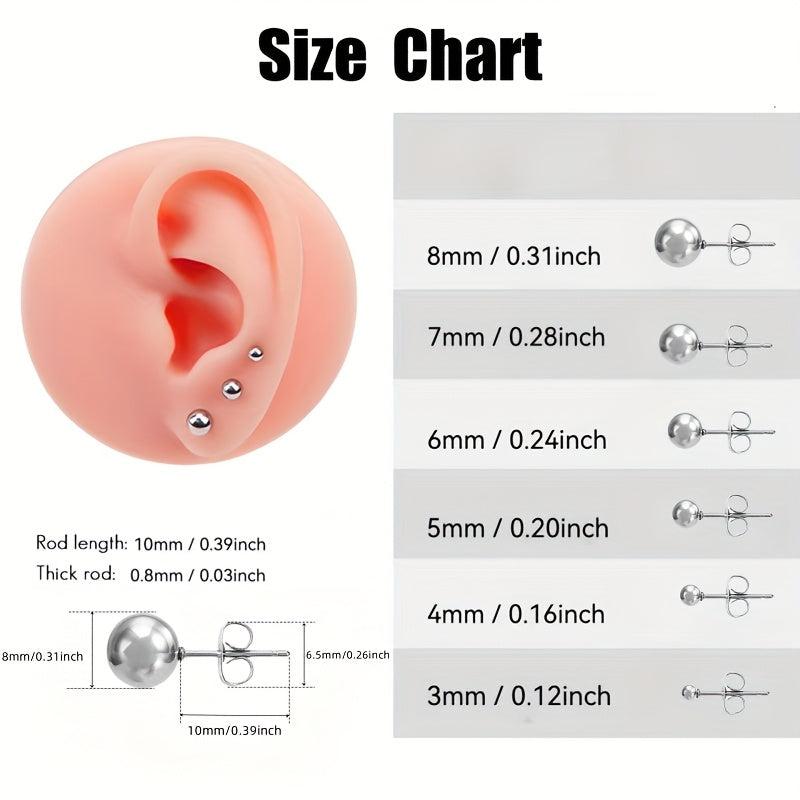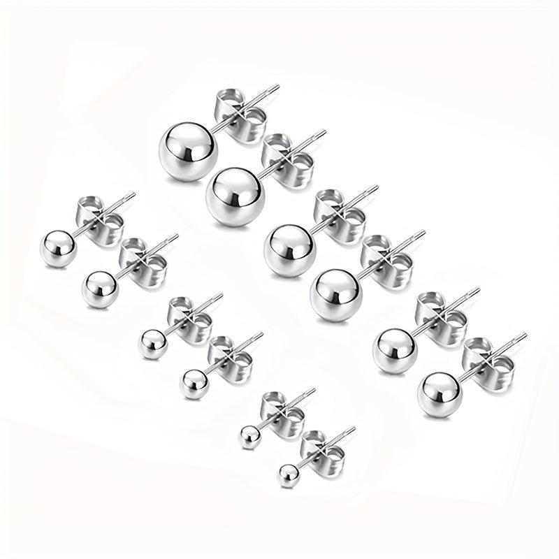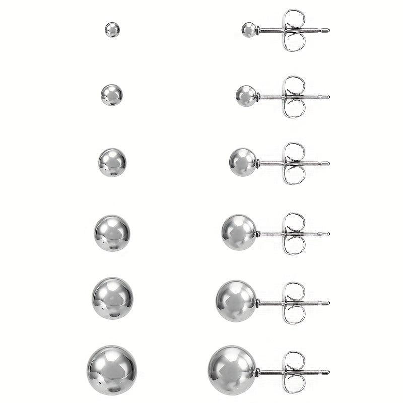 This set includes 6 pairs of stainless steel ball stud earrings in sizes ranging from 3mm to 8mm. Perfect for birthdays, Christmas, or any occasion.
