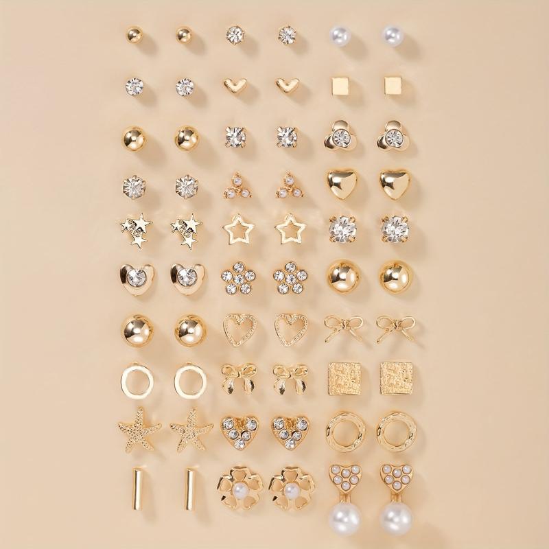This set includes 60 pieces of metal faux flower rhinestone heart and bow earrings, perfect for daily wear and can be a great addition to your jewelry collection. It also makes a lovely holiday gift for women.