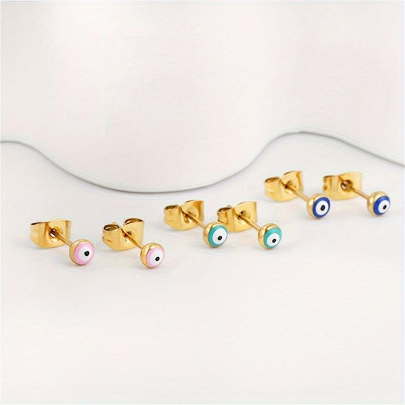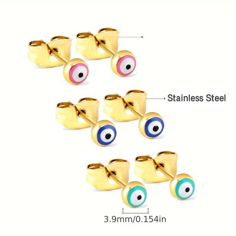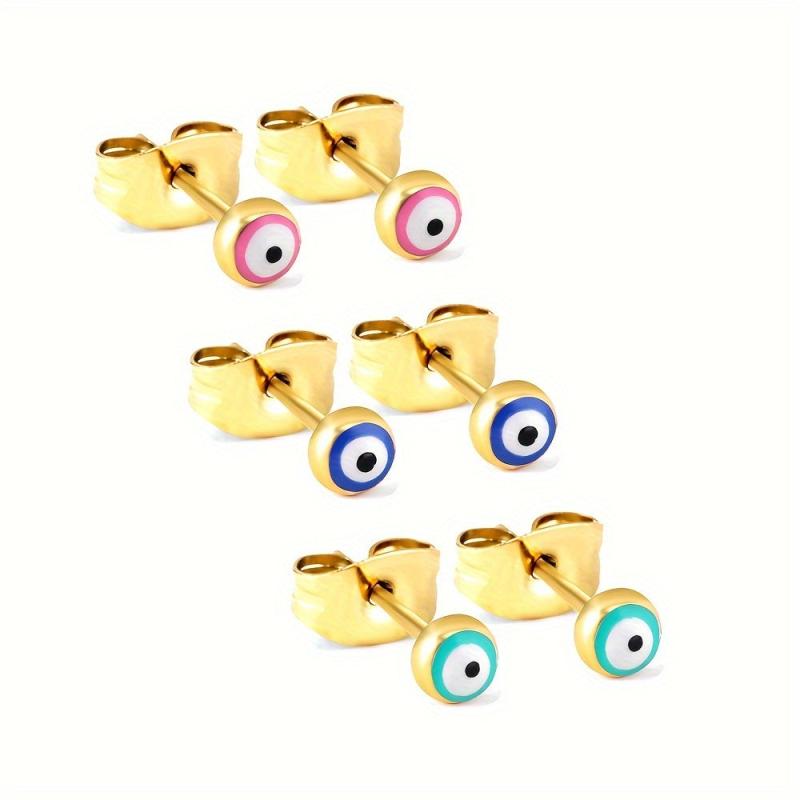 6pcs Gothic Triple Eye Stud Earrings Evil Eye Round